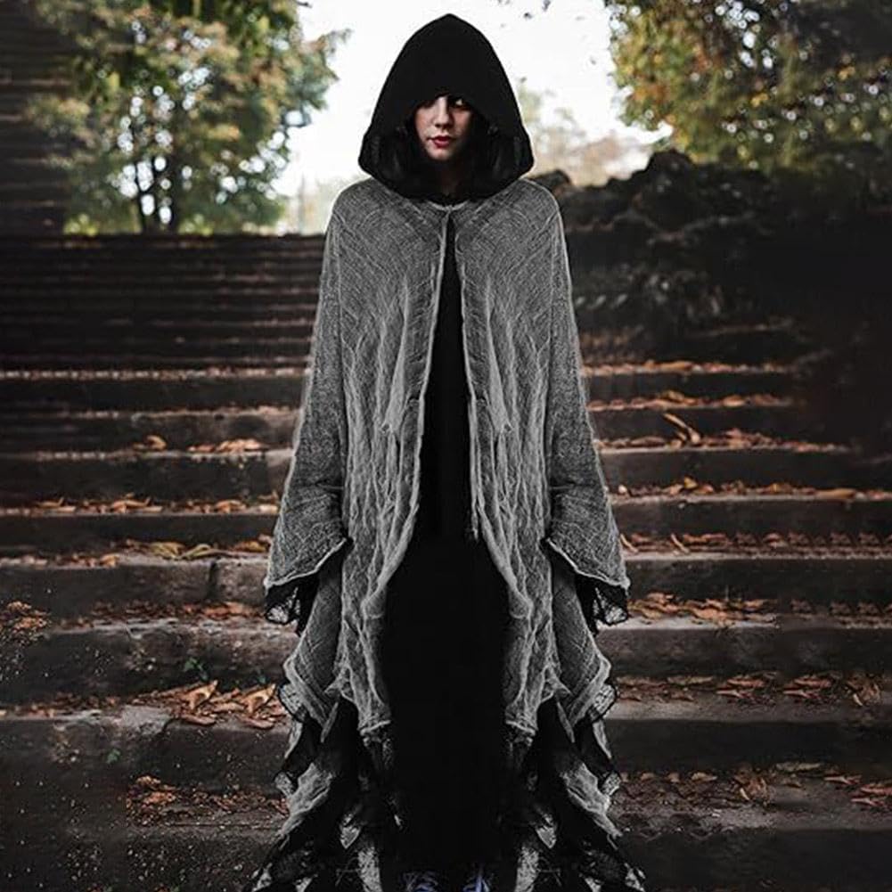 Contenuto della confezione: riceverai 1 mantello medievale di Halloween dal design classico, lo strato interno è nero e il mantello esterno è grigio, pieno di atmosfera medievale, il mantello di Halloween può soddisfare le tue esigenze di costume o le esigenze quotidiane di usura. Accessorio ideale per il tuo costume di Halloween. Taglia unica: il mantello con cappuccio di Halloween è di circa 185 cm incluso il cappuccio, questo mantello è progettato per adattarsi ad adulti di tutte le forme e dimensioni, la dimensione universale può avvolgere bene intorno al tuo corpo, facendoti risaltare in qualsiasi evento a tema, l'accessorio perfetto per tutte le occasioni di Halloween. Materiale di alta qualità: il mantello medievale con cappuccio è realizzato in lino e tessuto a rete di qualità, morbido al tatto e comodo da indossare, non si rompe o sbiadisce facilmente, leggero ma robusto, facile da indossare e togliere, per un'esperienza confortevole e di lunga durata. Design di Halloween: il mantello con cappuccio rinascimentale è progettato con il classico tema di Halloween, facile da creare un senso di orrore e mistero, migliora l'atmosfera horror di Halloween, ti consente di goderti di più il divertimento del gioco di ruolo, perfetto per costumi di Halloween come maghi, streghe e vampiri. Varie applicazioni: i costumi medievali di Halloween sono perfetti per feste di Halloween, feste di Natale, feste in costume, feste in maschera, feste di compleanno, maghi, streghe, vampiri e molto altro ancora, un regalo perfetto da condividere con familiari, amici, colleghi e molto altro ancora.