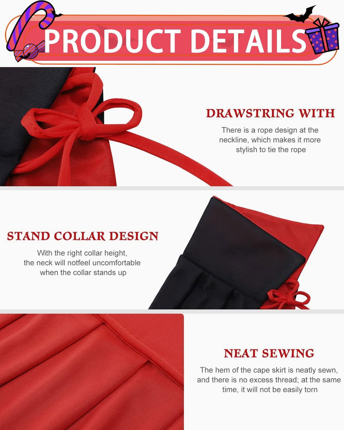 Materiale Di Alta Qualità: il mantello è realizzato in materiale lavorato a maglia di alta qualità, comodo, morbido, traspirante e resistente Mantello Rimovibile: la corda sul mantello può fissare efficacemente il mantello e non verrà spazzata via dal vento e il mantello può essere rimosso Mantello A Doppio Strato: il mantello ha un doppio cappuccio, nero da un lato e rosso dall'altro. Puoi scegliere il colore in base ai tuoi desideri Ampiamente Usato: adatto per feste di Halloween, carnevale, streghe, giochi di ruolo sui vampiri, molto bello e molto popolare Dimensioni: 90 cm di lunghezza, si prega di scegliere in base alla propria altezza, non adatto solo per adulti, ma anche per adolescenti