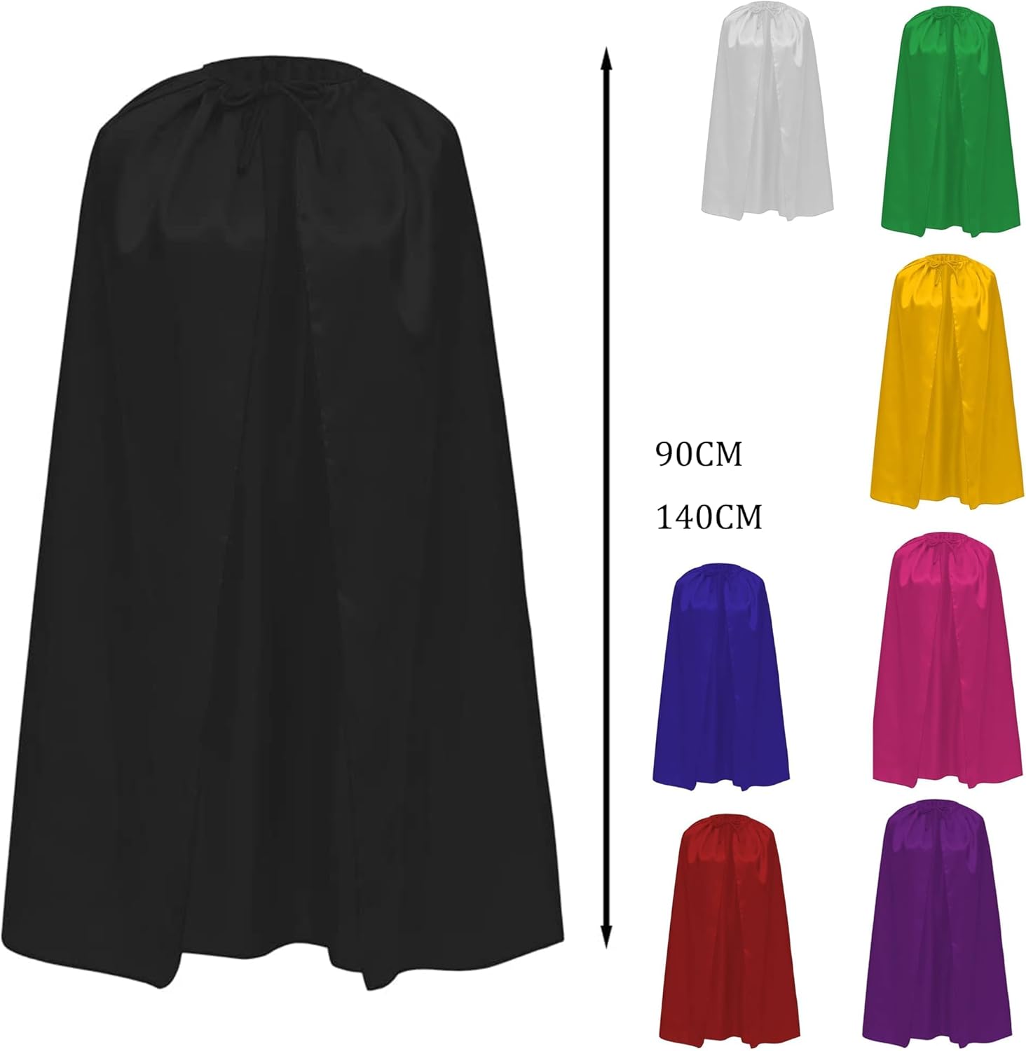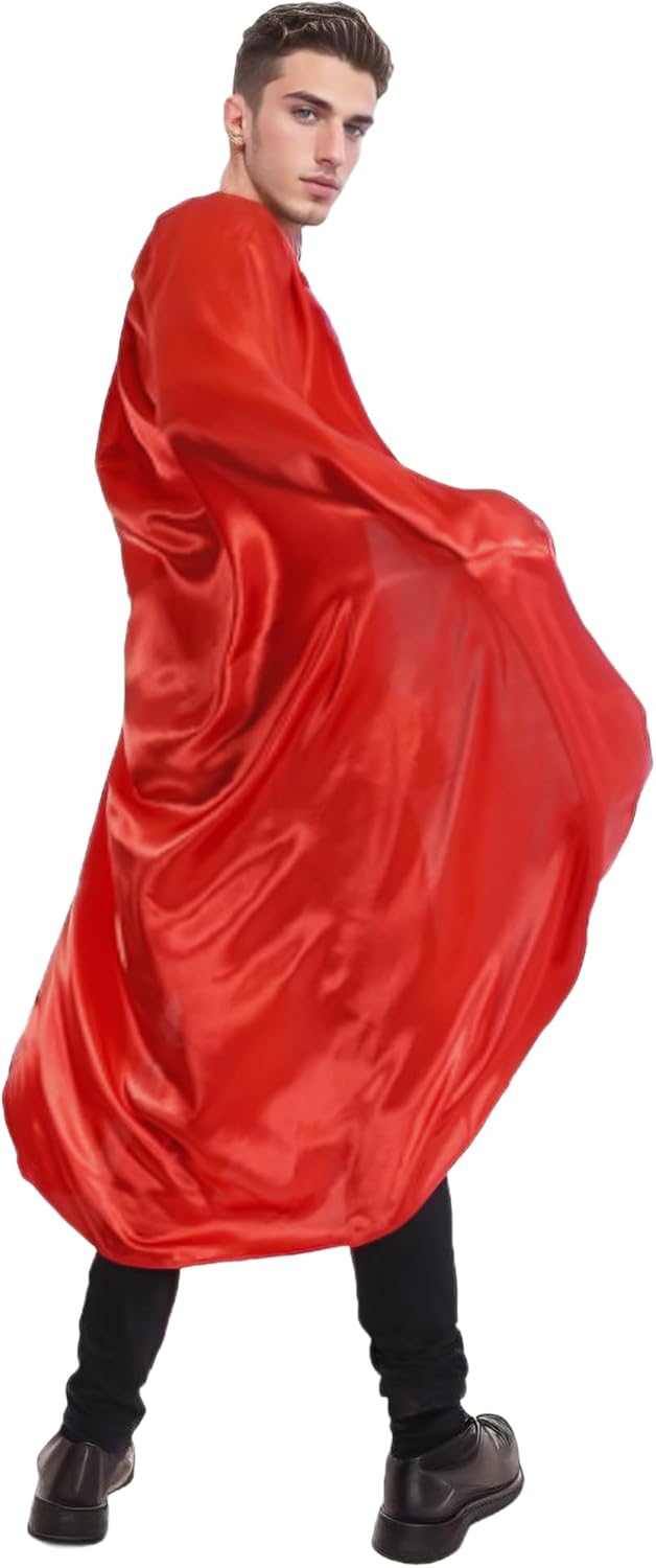 Strato versatile per tutte le età: questo strato satinato con maschera è ideale sia per bambini che per adulti. Perfetto per costumi da supereroe, mago, vampiro, principessa o personaggi cosplay. Materiale morbido e lucido tipo satinato: realizzato in tessuto di poliestere leggero e lucido, offre un look elegante e accattivante, senza perdere comfort e mobilità durante l'uso. Cuciture rinforzate per una maggiore durata; il bordo dello strato è accuratamente cucito per evitare deformazioni, rendendolo una scelta riutilizzabile per molteplici occasioni. 【Varietà di colori disponibili】Scegli tra una vasta gamma di colori (nero, rosso, blu, viola, rosa, bianco, verde e giallo) per abbinarsi perfettamente al tuo personaggio o a tema evento. Ideale per feste, eventi scolastici e giochi di ruolo: sia per un compleanno, un carnevale, un evento in costume o una funzione scolastica, questo mantello è il complemento perfetto per stimolare l'immaginazione.