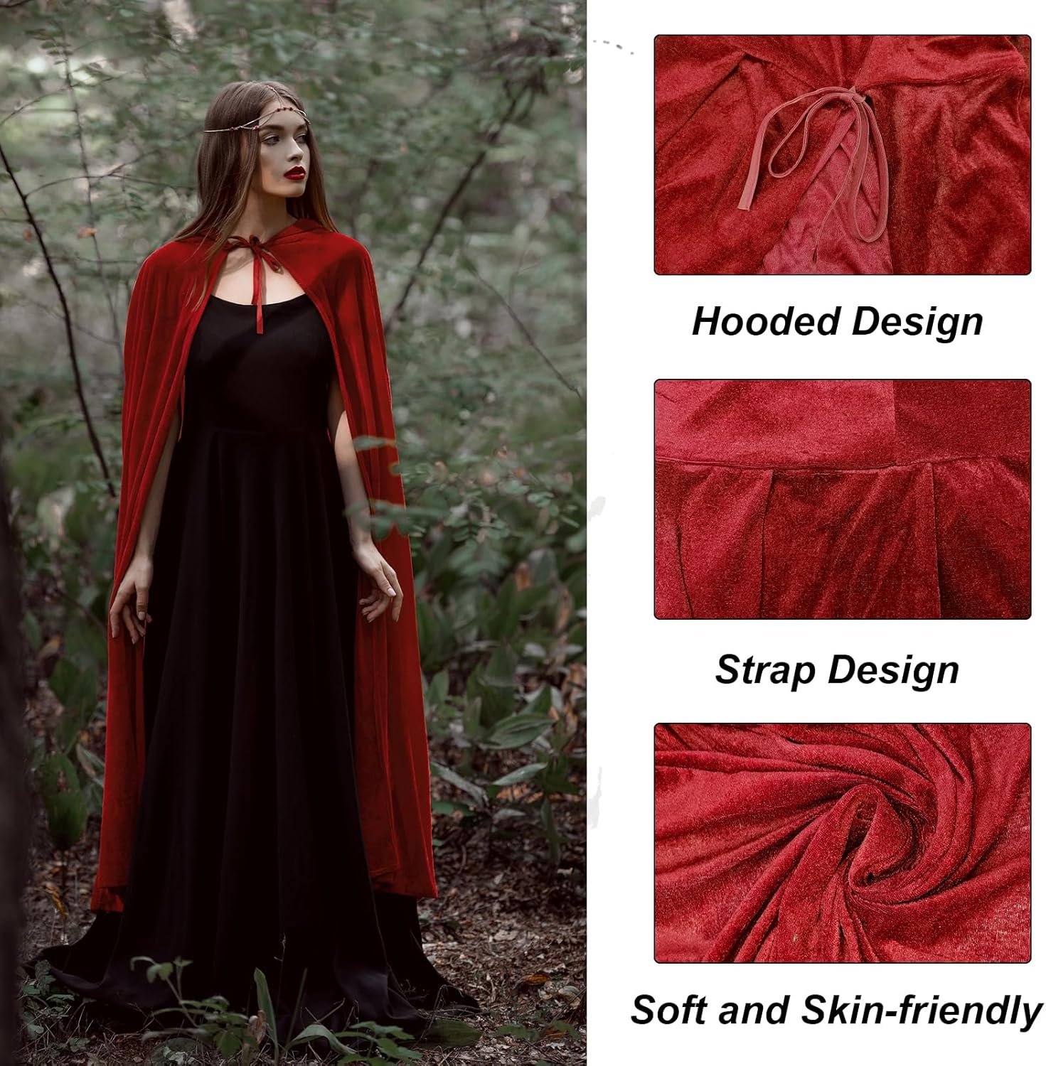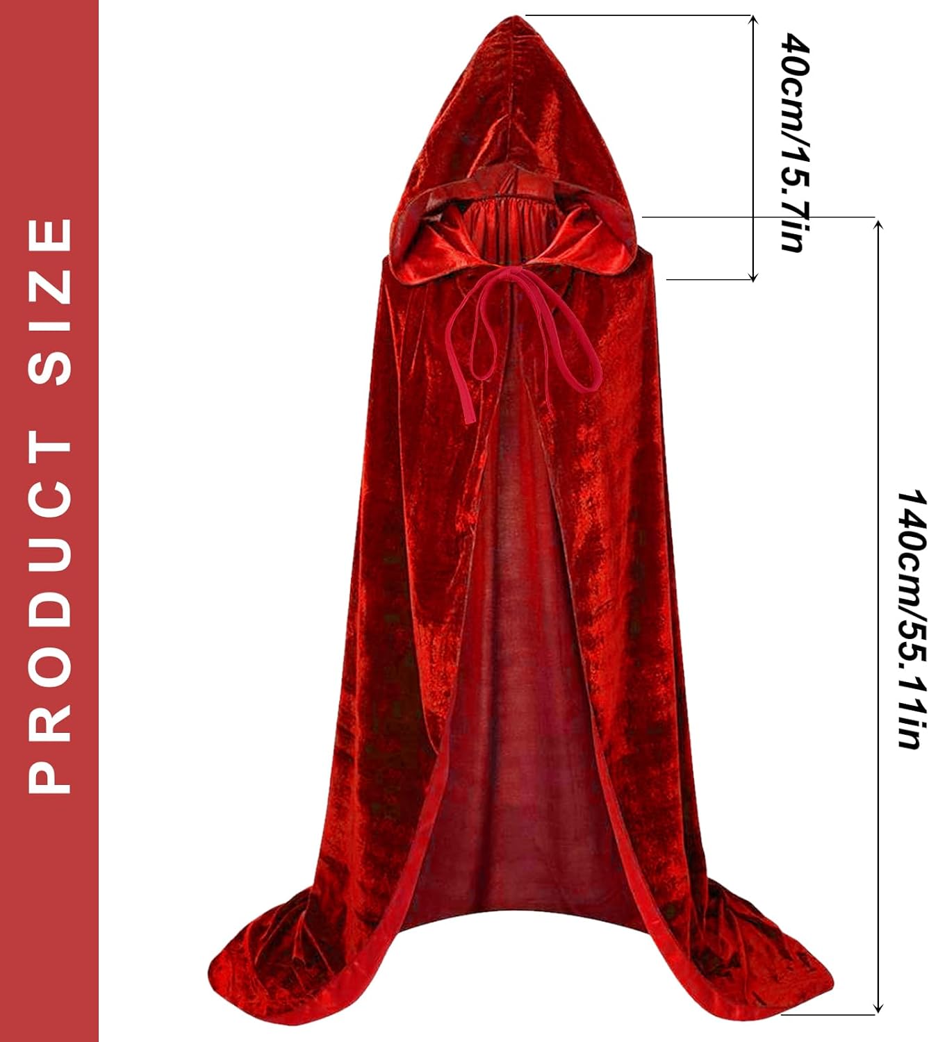 Mantello rosso di Halloween: riceverai un mantello rosso di 140 cm per vestire qualsiasi costume. TAGLIA: La lunghezza del mantello rosso dal colletto all'orlo è di 140 cm, il design con cappuccio è perfetto per creare un senso di mistero, adatto sia a uomini che a donne. Tessuto di alta qualità: il materiale in velluto denso di alta qualità è confortevole, delicato sulla pelle, traspirante, non stinge e ha un aspetto elegante, conferendo al mantello un aspetto strutturato ed elegante. COLORE UNICO: il mantello rosso si distingue per il suo colore rosso unico e vibrante, aggiungendo un tocco misterioso a qualsiasi costume. Che tu ti stia travestendo da potente mago o da strega spettrale, questo mantello completerà il tuo look. PERFETTO PER LE OCCASIONI: questo mantello è progettato per essere perfetto sia per adulti che per bambini. Perfetto per costumi da vampiro di Halloween o eventi in maschera, feste a tema e altre occasioni, che possono darti più divertimento e creatività.