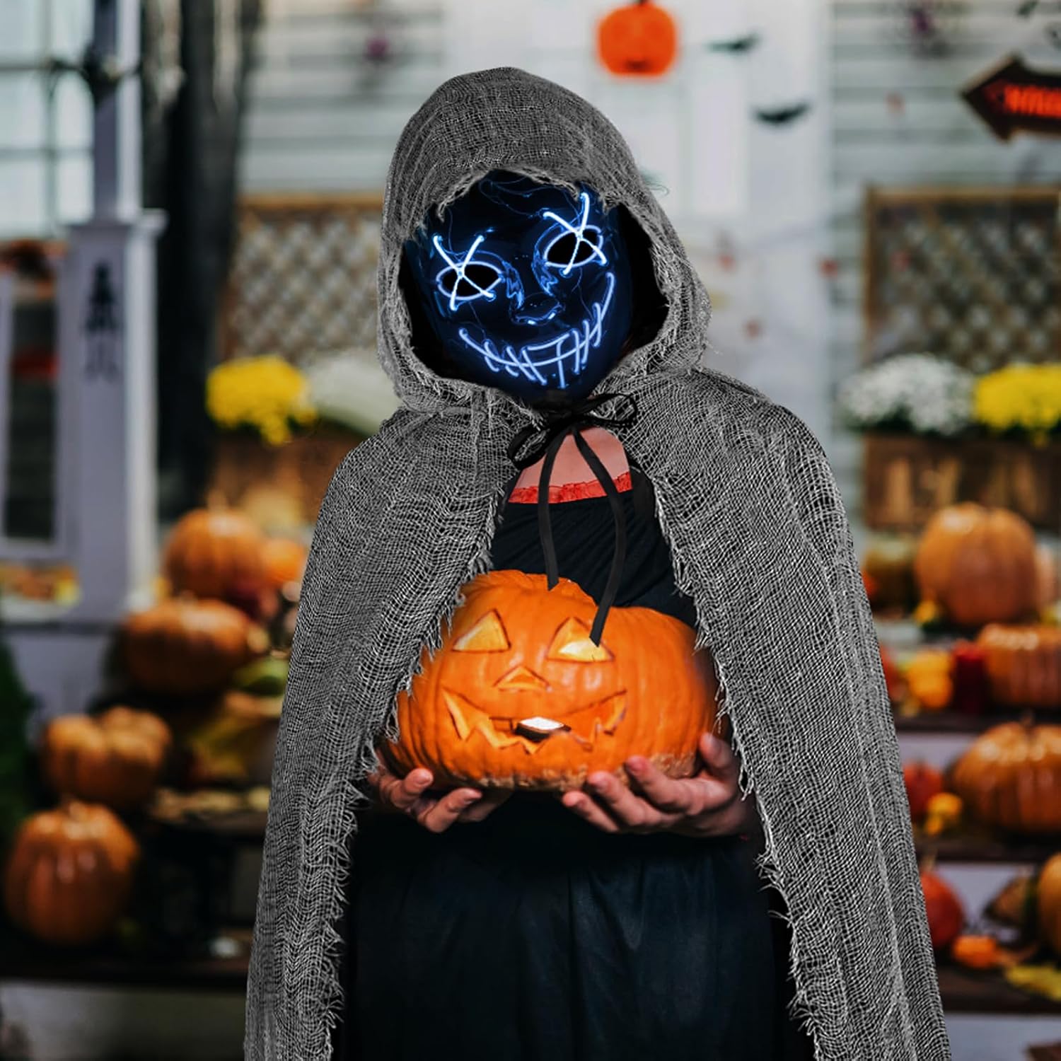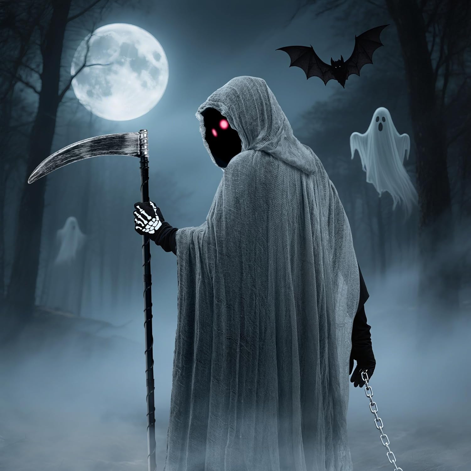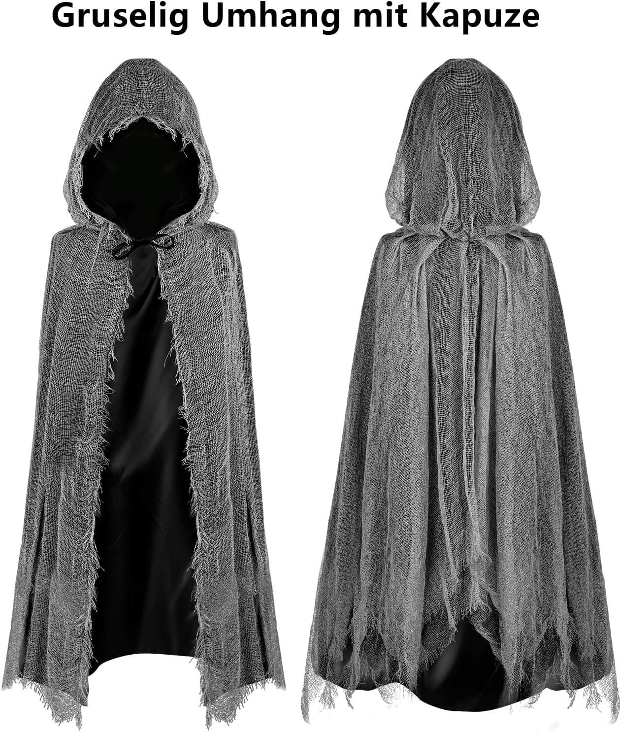 Mantello spaventoso con cappuccio, costume di Halloween per adulti e bambini, fantasmi del mietitore triste, mantello medio, costume da fantasma, mantello spettrale, costume di Halloween nero