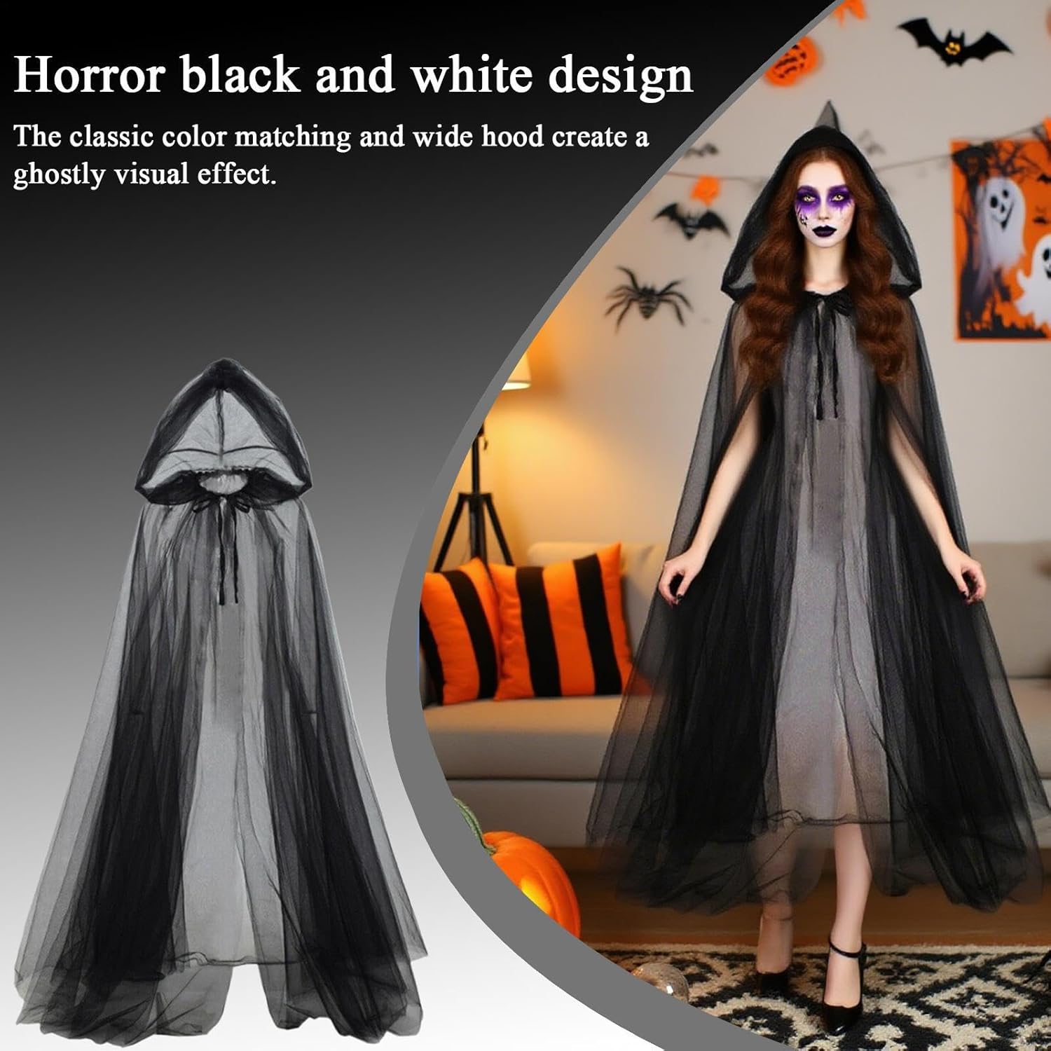 Design facile da indossare: combinare funzionalità con la moda, questo mantello con cappuccio facile da fares si adatta liberamente e si adatta bene a diversi tipi di corpo, soddisfacendo le esigenze della maggior parte degli adulti mentre funge da scelta ideale di ensemble di Halloween Versatilità del pavimento: ottenere un sorprendente effetto lungo il pavimento con questo mantello di Halloween realizzato con tulle morbido, con un design regolabile innovativo che aggiunge profondità attraverso look a strati mentre mostra un'immaginazione artistica perfettamente Adattamento del ruolo versatile: ottenere ruoli diversi attraverso l'abbinamento del trucco, adatto al cosplay a tema oscuro e garantendo una presenza indimenticabile alle riunioni di Halloween Bellissimo regalo: Condividi il calore presentando questo mantello, progettato per esprimere cures per la famiglia, gli amanti o gli amici, rendendolo un regalo ideale per Halloween, Natale, anno e altre feste festive Design in bianco e nero horror: il sorprendente tema in bianco e nero di questo mantello, abbinato a un capanne largo, garantisce una silhouette spettrale che cattura l'attenzione e amplifica la terrificante aura ideale per gli eventi di Halloween