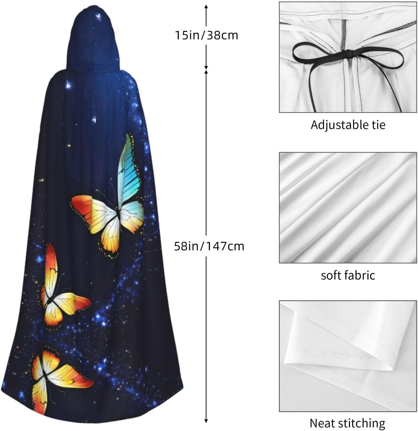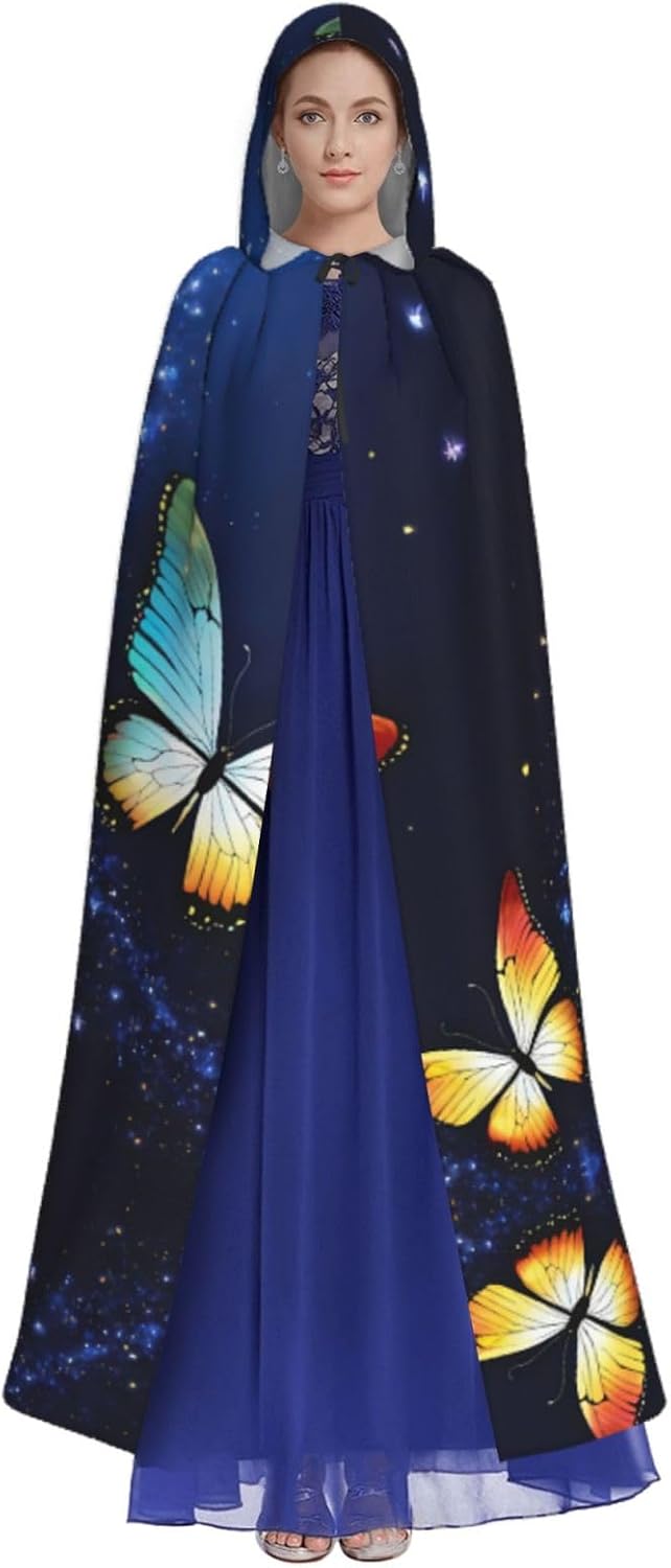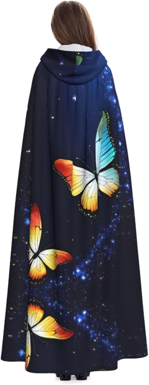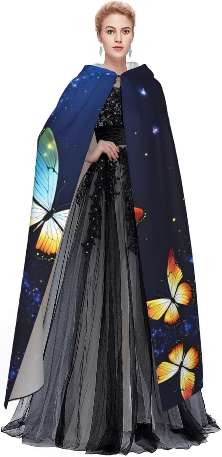 Realizzato in poliestere, questo simpatico mantello con stampa a farfalla con cappuccio garantisce longevità e comfort. Le sue dimensioni ottimali assicurano una copertura completa per tutte le età, facendoti risaltare in qualsiasi evento. Che tu sia diretto per Halloween, un evento cosplay, un costume da palcoscenico, una festa in maschera, una festa a tema, un ballo o una convention di fumetti, questo mantello è una scelta ideale. Il suo design unico, completo di un grande cappuccio e cravatte collare. Inoltre, puoi dire addio ai metodi di pulizia complicati. Questo simpatico mantello con cappuccio con stampa a farfalla è lavabile in lavatrice e a mano, offrendo una cura senza sforzo. Esci con stile e comfort con il nostro mantello con cappuccio, il tuo compagno per tutti gli eventi e le occasioni.