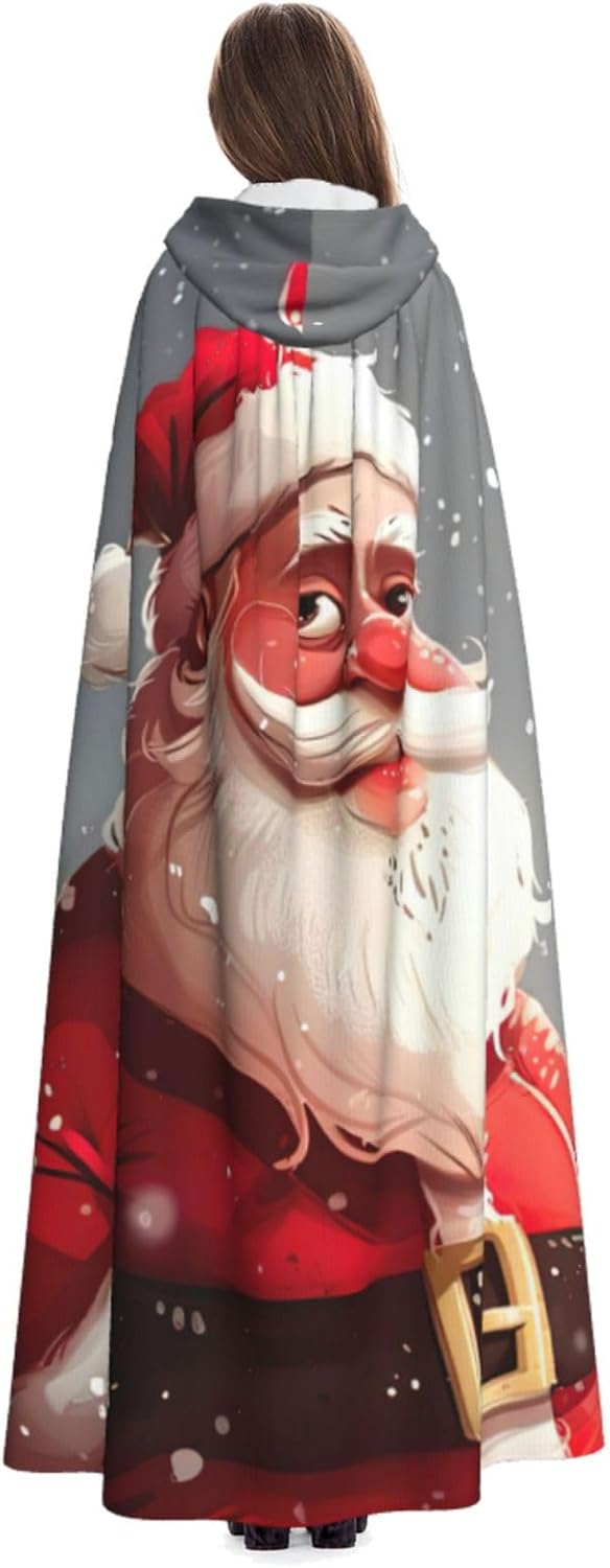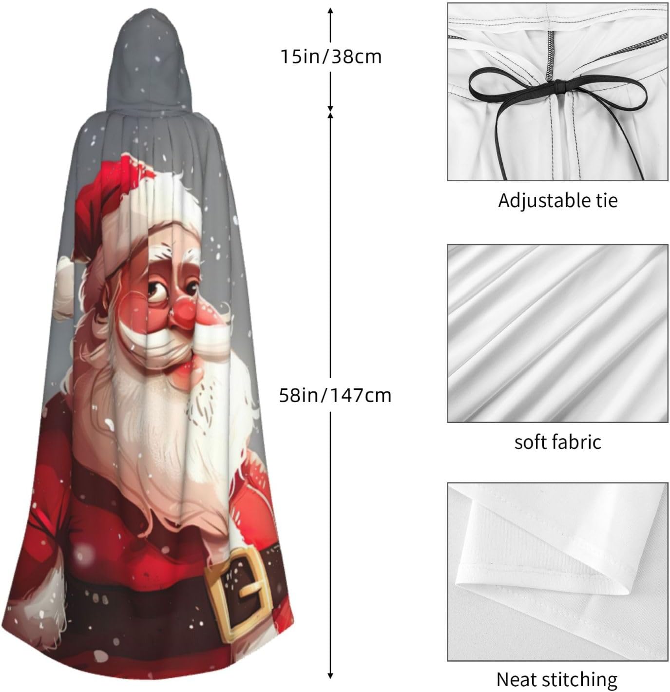 Realizzato in poliestere, questo mantello con stampa di Babbo Natale con cappuccio garantisce longevità e comfort. Le sue dimensioni ottimali assicurano una copertura completa per tutte le età, facendoti risaltare in qualsiasi evento. Che tu sia diretto per Halloween, un evento cosplay, un costume da palcoscenico, una festa in maschera, una festa a tema, un ballo o una convention di fumetti, questo mantello è una scelta ideale. Il suo design unico, completo di un grande cappuccio e cravatte collare. Inoltre, puoi dire addio ai metodi di pulizia complicati. Questo mantello con cappuccio con stampa di Babbo Natale è lavabile in lavatrice e a mano, offrendo una cura senza sforzo. Esci con stile e comfort con il nostro mantello con cappuccio, il tuo compagno per tutti gli eventi e le occasioni.