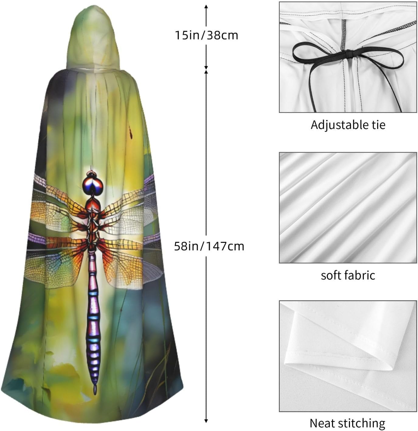 Realizzato in poliestere, questo mantello con stampa libellula con cappuccio garantisce longevità e comfort. Le sue dimensioni ottimali assicurano una copertura completa per tutte le età, facendoti risaltare in qualsiasi evento. Che tu sia diretto per Halloween, un evento cosplay, un costume da palcoscenico, una festa in maschera, una festa a tema, un ballo o una convention di fumetti, questo mantello è una scelta ideale. Il suo design unico, completo di un grande cappuccio e cravatte collare. Inoltre, puoi dire addio ai metodi di pulizia complicati. Questo mantello con cappuccio con stampa libellula è lavabile in lavatrice e a mano, offrendo una cura senza sforzo. Esci con stile e comfort con il nostro mantello con cappuccio, il tuo compagno per tutti gli eventi e le occasioni.