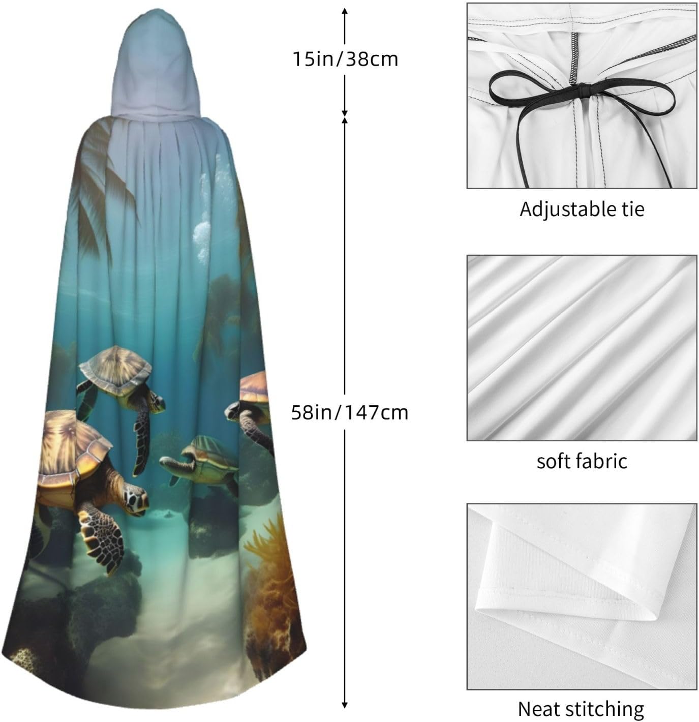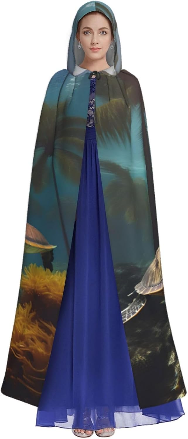 Realizzato in poliestere, questo mantello con stampa subacquea con palme e tartarughe marine con cappuccio garantisce longevità e comfort. Le sue dimensioni ottimali assicurano una copertura completa per tutte le età, facendoti risaltare in qualsiasi evento. Che tu sia diretto per Halloween, un evento cosplay, un costume da palcoscenico, una festa in maschera, una festa a tema, un ballo o una convention di fumetti, questo mantello è una scelta ideale. Il suo design unico, completo di un grande cappuccio e cravatte collare. Inoltre, puoi dire addio ai metodi di pulizia complicati. Questo mantello con cappuccio con stampa subacquea con palme e tartarughe marine è lavabile in lavatrice e a mano, offrendo una cura senza sforzo. Esci con stile e comfort con il nostro mantello con cappuccio, il tuo compagno per tutti gli eventi e le occasioni.