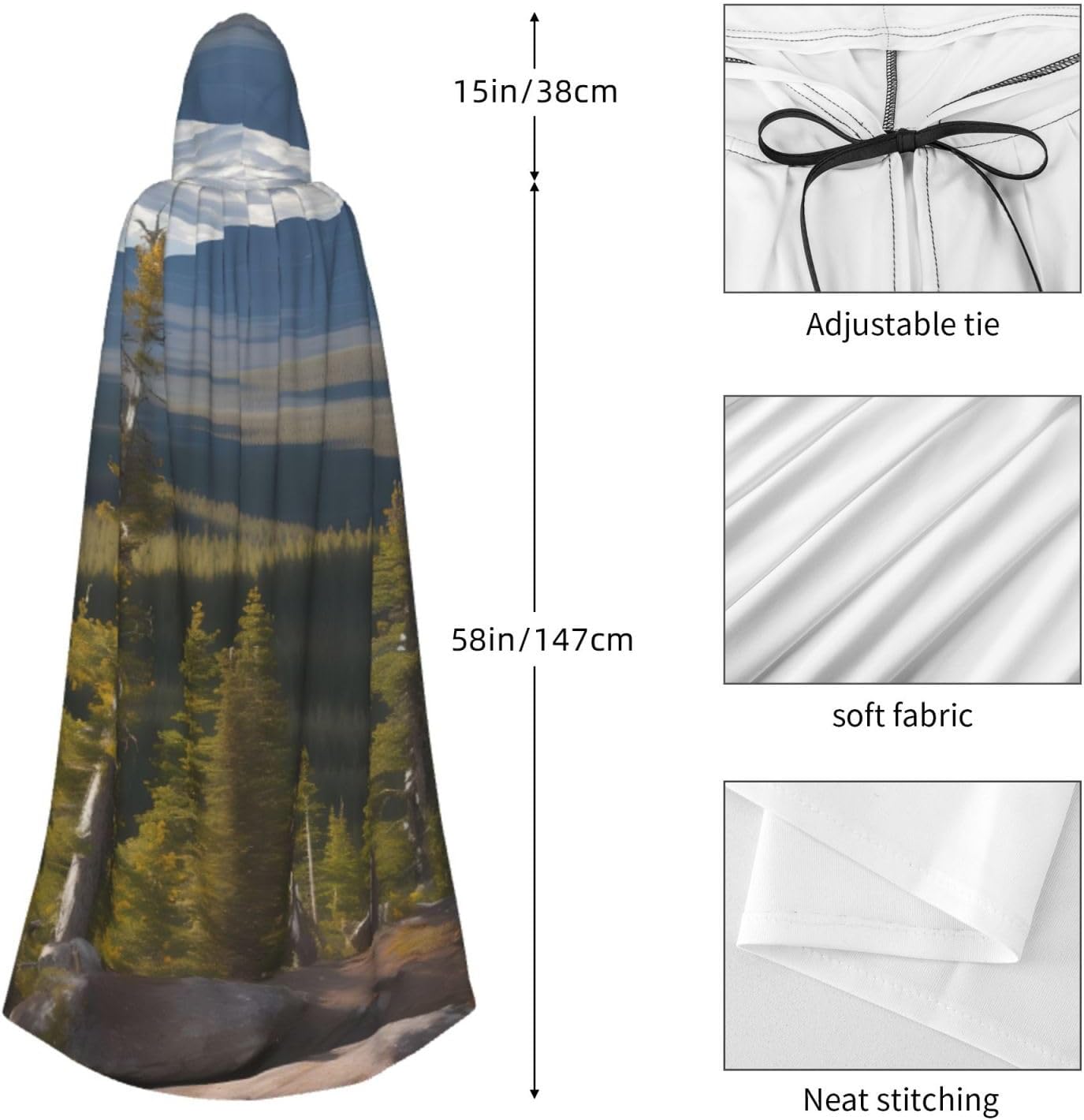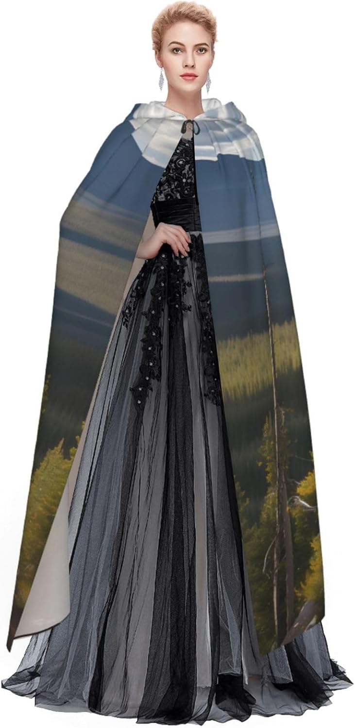 Realizzato in poliestere, questo mantello con stampa di alci e pino di montagna con cappuccio garantisce longevità e comfort. Le sue dimensioni ottimali assicurano una copertura completa per tutte le età, facendoti risaltare in qualsiasi evento. Che tu sia diretto per Halloween, un evento cosplay, un costume da palcoscenico, una festa in maschera, una festa a tema, un ballo o una convention di fumetti, questo mantello è una scelta ideale. Il suo design unico, completo di un grande cappuccio e cravatte collare. Inoltre, puoi dire addio ai metodi di pulizia complicati. Questo mantello con cappuccio con stampa di alci e pino di montagna è lavabile in lavatrice e a mano, offrendo una cura senza sforzo. Esci con stile e comfort con il nostro mantello con cappuccio, il tuo compagno per tutti gli eventi e le occasioni.