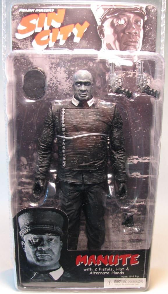 Viene fornito con due pistole, cappello e mani alternate. Prodotto da Neca nel 2005 Sin City Series 1 manuto (bianco e nero) Action Figure Sin City Series 1 Manute (bianco e nero) Action Figure