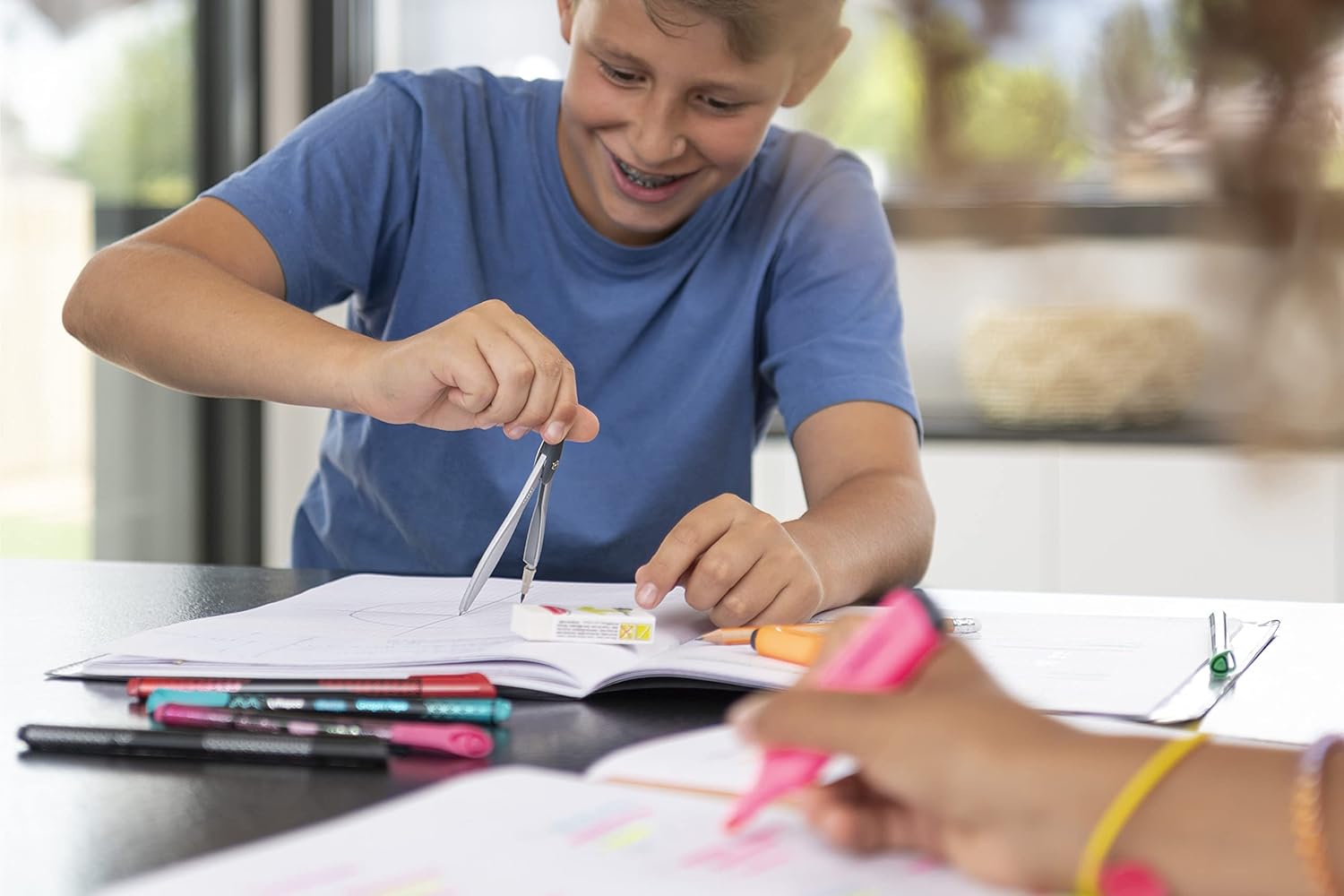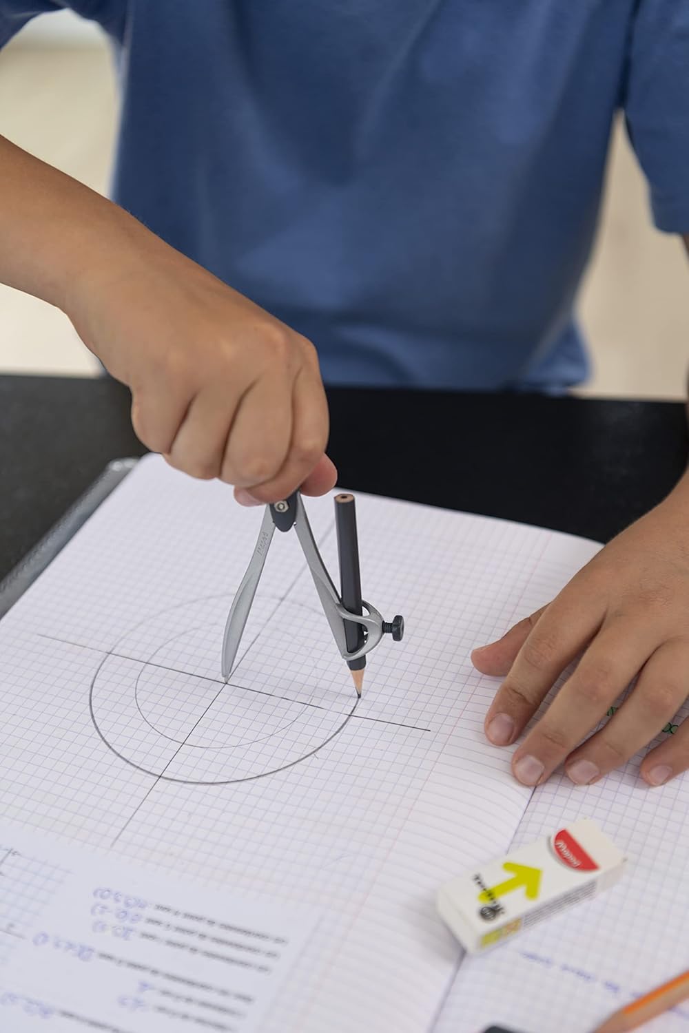 Bussola solida per la scuola: dotata di aste in metallo, la bussola Study è perfetta rigidità e durata ottimale. Resiste alle manipolazioni quotidiane e alla vita frenetica degli studenti. Con la sua testa ergonomica facile da tenere, è la bussola perfetta per accompagnare i bambini durante la scuola Bussola alla mia: la bussola per la scuola è dotata di un piombo e un astuccio. Ideale per vari stili e colori di trame, per disegni vivaci e colorati Set con righello integrato: la scatola della bussola Study ha un righello integrato per facilitare le misurazioni durante il tracciamento e per regolare la distanza dei rami con precisione GAMMA DI STUDIO: combinando le bussole in metallo di Maped, la gamma Study illustra la forza dell'innovazione Maped combinando l'artigianato tradizionale con innovazioni rivoluzionarie. La gamma comprende bussole dotate del sistema Stop con bloccaggio dei rami e altre scatole con bussola portamatite, astucci meccanici e temperamatite, tra gli altri MAPED : Dalla sua creazione nel 1947, Maped (Manufacture d'Articles de Precision Et de Dessin) ha sostenuto il suo sviluppo sul suo know-how industriale, sulla sua cultura dell'innovazione e sulla sua reattività per offrire ai suoi utenti soluzioni sempre più efficienti e sostenibili