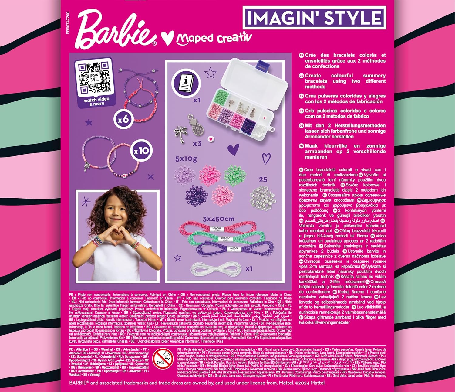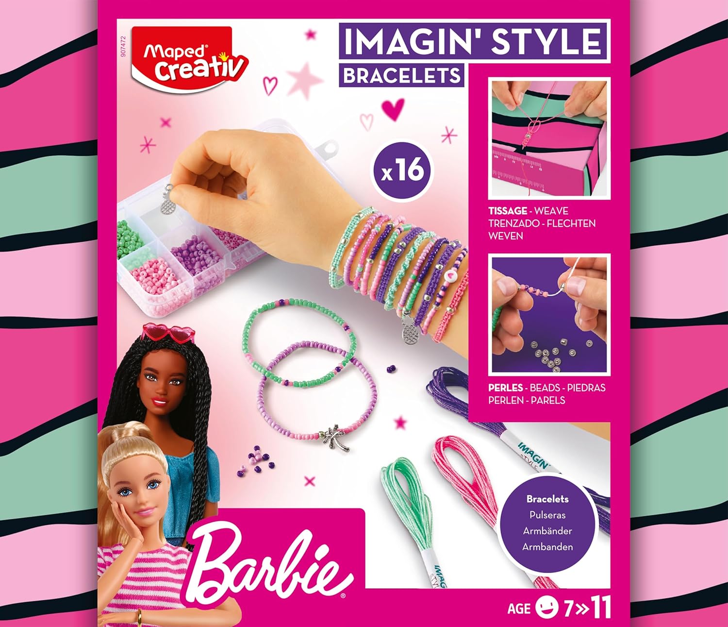 IMMAGINE IL TUO STILE : Con Imagin'Style Bracciali Barbie, creato autentici braccialetti a tua immagine, unici e colorati per l'estate. È facile, puoi realizzare braccialetti intrecciati, nonché braccialetti con perline e nappe. Quindi scegli quali indosserai, solo o insieme, secondo i tuoi gusti, e il tuo stile. LA CREAZIONE DEI 7 ANNI: Imagin'Style Barbie offre un'attività di braccialetto facilitata per gli appassionati di moda, dai 7 anni. La tessitura è guidata grazie alla scatola e ad una singola tecnica a nodo. I braccialetti con perline e ciondoli sono rapidi da realizzare. Attività per creare 16 braccialetti (6 braccialetti intrecciati, 10 braccialetti perle). UNA ATTIVITÀ COMPLETA: Imagin'Style Barbie permette al bambino di sviluppare la sua creatività, concentrazione e presa, divertendosi. I bambini sviluppano il loro know-how e iniziano alla creazione artistica di moda. Scatola portagioie per le creazioni: la scatola di cartone decorata si conserva come portagioie per le creazioni. È inclusa una scatola per riporre perline per un'attività creativa organizzata. MAPED CREATIV, KIT ATTIVITÀ INGEGNATIVO: Maped Creativ offre una collezione di attività manuali innovative, ultra divertenti e stimolanti, per realizzare con le proprie mani, sviluppare la propria creatività, realizzare creazioni uniche, e giocare.