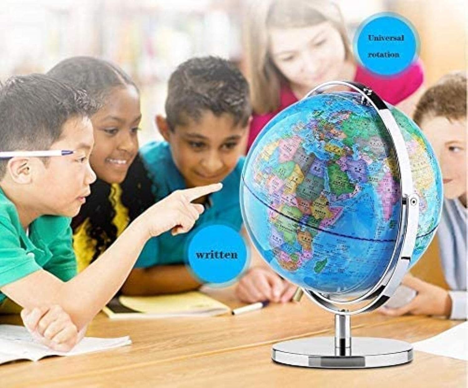 [Globi geografici dettagliati]Questo mappamondo ti offre la mappa mondiale completa for vedere chiaramente tutti i contenuti, gli oceani e i paesi. Questo mappamondo con supporto è realizzato in plastica resistente e liscia, che permette di ruotarlo facilmente con le dita. La base di questo mappamondo da scrivania è rivestita in flanella for garantire stabilità durante la rotazione e non graffiare la superficie della scrivania durante lo spostamento. [Dimensioni del globo terrestre da scrivania] Le dimensioni di questo globo terrestre sono 25*25 cm/10*10 pollici, 32*32 cm/12,59*12,59 pollici (A x L). Il mappamondo può essere posizionato sul supporto preferito o da solo. Perfetto per l'arredamento della casa e dell'ufficio, questo mappamondo ha un aspetto elegante e moderno che si integra con i colori della località scelta.