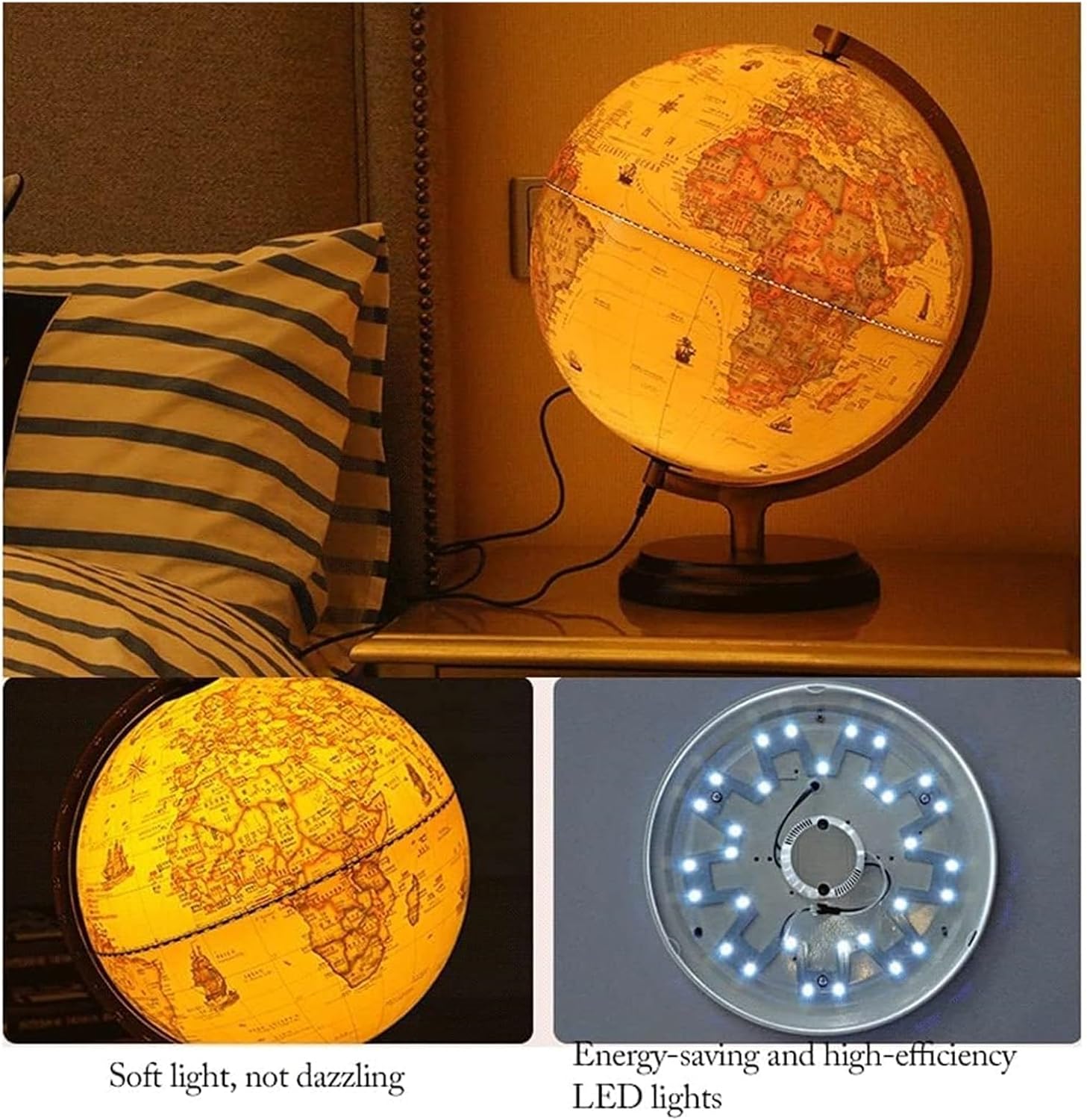 I globi sono eccellenti strumenti educativi e il modo perfetto per ispirare l'apprendimento e l'esplorazione della geografia mondiale. I globi forniscono un modo divertente per introdurre la geografia. Costituiscono ottimi strumenti di riferimento in classe. Staffa in + base in legno, alta precisione, solida e durevole e più comoda da imparare L'uso di lampade a LED morbide a risparmio energetico può essere sostituito di notte e la staffa del righello con in lega ha una di latitudine for cogliere la posizione geografica in qualsiasi momento. La spessa base in legno ha un bellissimo globo classico, che può essere utilizzato come lampada da tavolo. Le luci sono morbide e possono decorare la tua camera da letto invece di essere luci LED abbaglianti e caotiche, a risparmio energetico ed efficienti. Stampa HD in cinese e inglese, i dettagli della mappa sono altamente recuperati e la doppia lingua cinese e inglese è il confronto. Imparare la geografia non è più difficile.