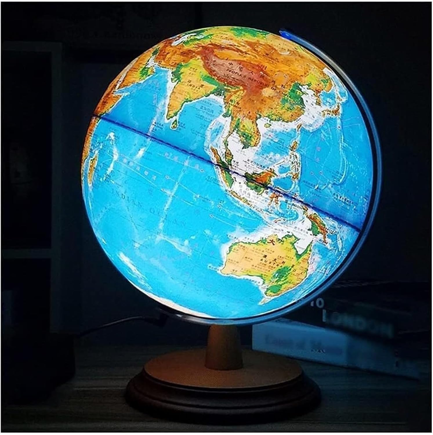 Usa questo globo per espandere i tuoi orizzonti e migliorare la tua comprensione della Terra e della sua geografia! Fornisce un modo divertente e conveniente per apprendere l'educazione geografica a casa, in classe o in ufficio. Polistirolo ad alto impatto, base in legno. Non dannoso per la salute. Il mappamondo vintage a LED illuminato è supportato da una struttura in metallo e una base in legno, garantendo stabilità e durata su un tavolo o una scrivania. Trova la campagna o il lago al buio o usalo come luce notturna quando ti addormenti. Non solo migliorerai le tue abilità geografiche, ma il mappamondo è anche dotato di luci LED integrate. Bilingue in cinese e inglese, in linea con gli standard internazionali, più interessante, 3 dimensioni.