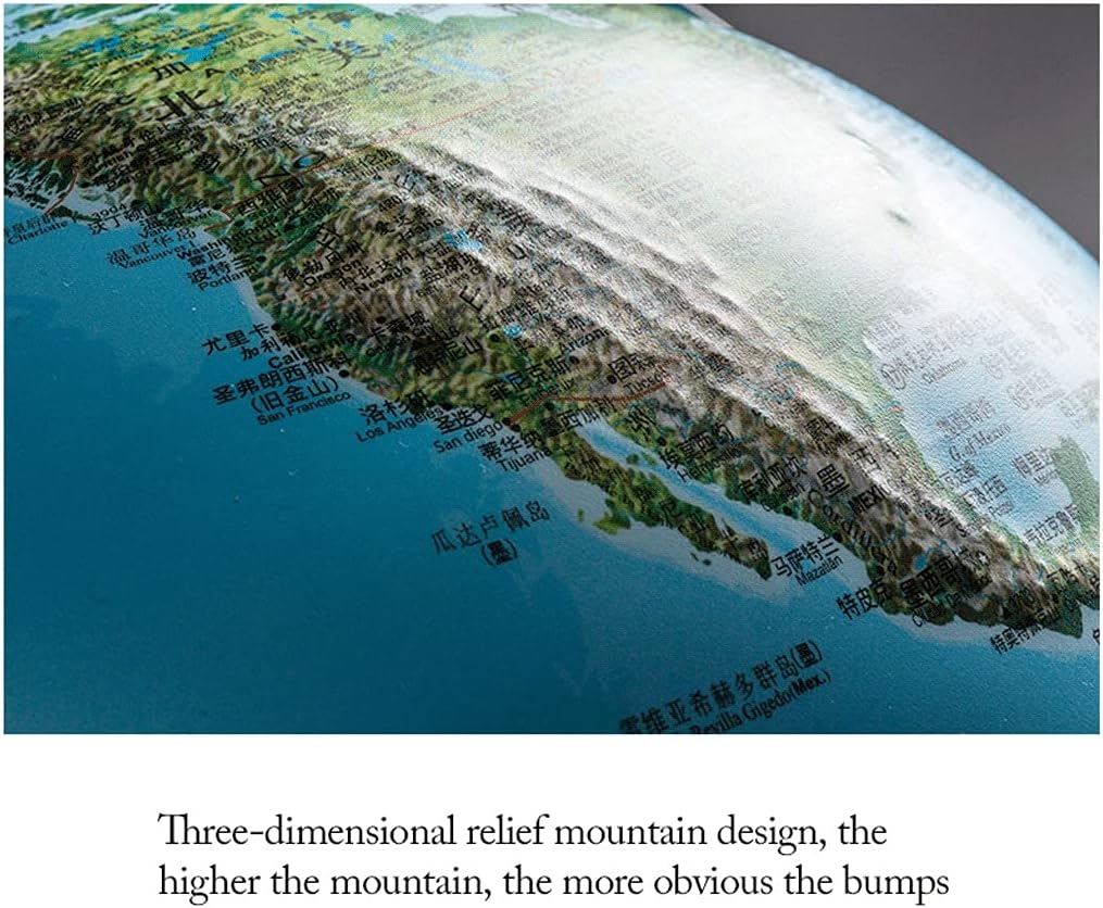Mappamondo colorato: questo bellissimo e colorato mappamondo costituisce una meravigliosa aggiunta all'arredamento della tua casa, classe e sala giochi. Aiuta i tuoi figli a comprendere le idee del mondo, dei continenti, dei paesi e delle città con un globo interattivo ben progettato Questo mappamondo premium da 25 cm di diametro è montato su una resistente base in legno nero, che ti consente di esplorare facilmente il mondo. Mappamondo in rilievo in rilievo: un mappamondo luminoso dal design accattivante con un classico oceano blu e rilievi in rilievo per indicare montagne e montagne. La ciliegina sulla torta per la casa, le librerie e le decorazioni dell'ufficio. Quando è illuminata, la luce rivela i dettagli e le caratteristiche del disegno Sfera decorativa: utilizzata come luce notturna unica per bambini o adulti o per aggiungere un senso di squisitezza alla decorazione della casa o dell'ufficio. Questo globo da 10 pollici con sfumature di blu oceano e terra risalterà nella decorazione della tua libreria! Globo scientifico: questo mappamondo per adulti è una mappa del globo terrestre, che può essere facilmente appresa sulla geografia ed è di dimensioni moderate.