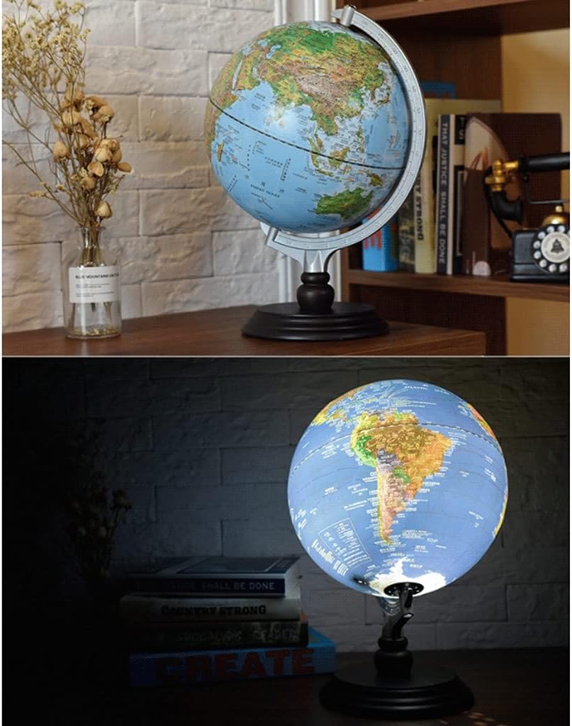 Mappamondo colorato: questo bellissimo e colorato mappamondo costituisce una meravigliosa aggiunta all'arredamento della tua casa, classe e sala giochi. Aiuta i tuoi figli a comprendere le idee del mondo, dei continenti, dei paesi e delle città con un globo interattivo ben progettato Questo mappamondo premium da 25 cm di diametro è montato su una resistente base in legno nero, che ti consente di esplorare facilmente il mondo. Mappamondo in rilievo in rilievo: un mappamondo luminoso dal design accattivante con un classico oceano blu e rilievi in rilievo per indicare montagne e montagne. La ciliegina sulla torta per la casa, le librerie e le decorazioni dell'ufficio. Quando è illuminata, la luce rivela i dettagli e le caratteristiche del disegno Sfera decorativa: utilizzata come luce notturna unica per bambini o adulti o per aggiungere un senso di squisitezza alla decorazione della casa o dell'ufficio. Questo globo da 10 pollici con sfumature di blu oceano e terra risalterà nella decorazione della tua libreria! Globo scientifico: questo mappamondo per adulti è una mappa del globo terrestre, che può essere facilmente appresa sulla geografia ed è di dimensioni moderate.