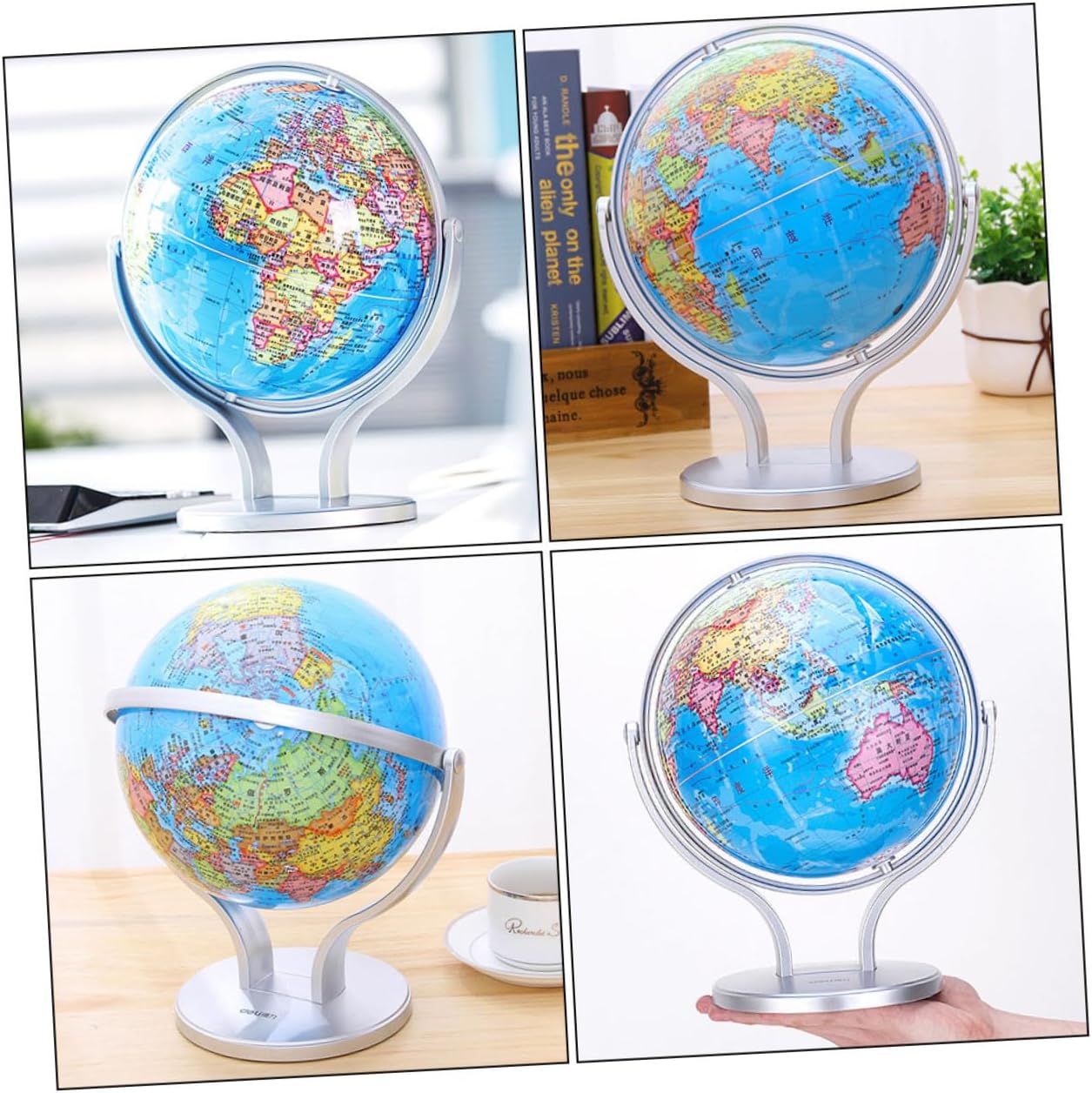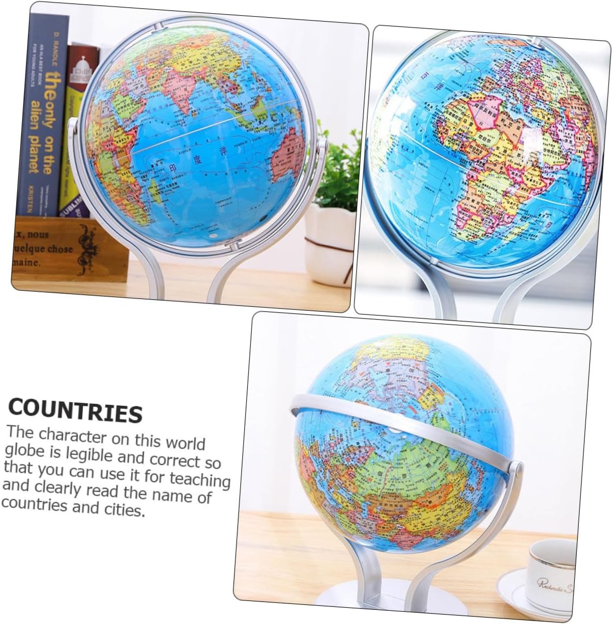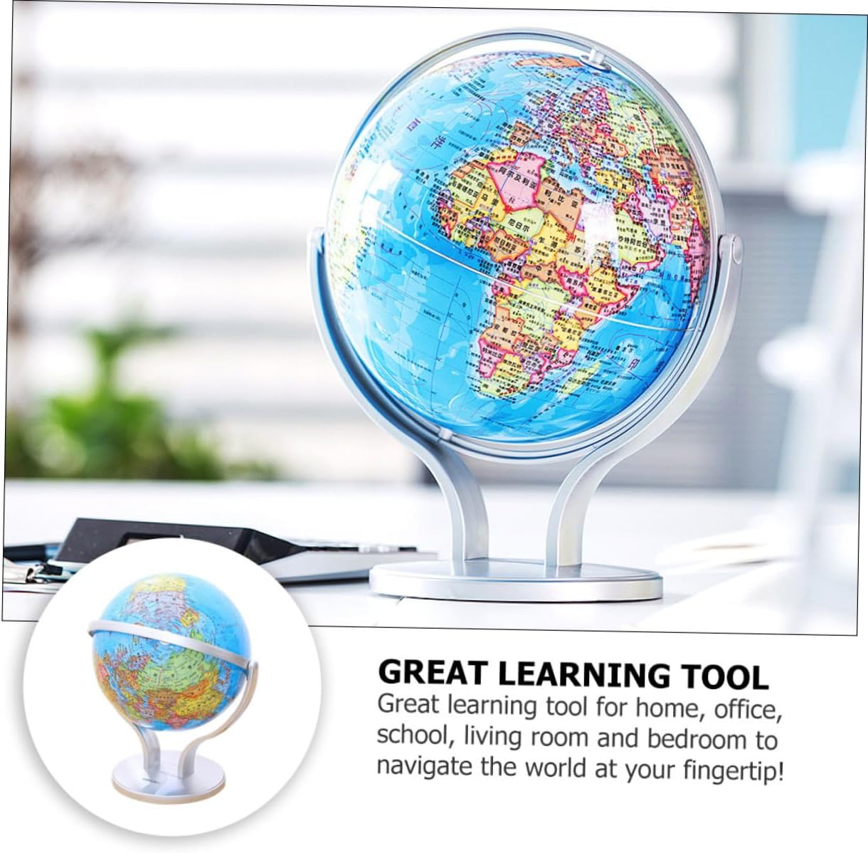 Mappamondo didattico per bambini: il mappamondo è composto da, con ottimi processi e un utile globo didattico. Mappamondo educativo: design con rotazione biassiale, può ruotare di 720 gradi, qualunque sia l'angolo in cui ti trovi, puoi vedere chiaramente, mappamondo desktop. Globi geografici con supporto: design con rotazione di 720 gradi, insegna ai bambini il nostro mondo in modo divertente, divertente e semplice, globi geografici educativi. Giocattolo per l'apprendimento della geografia dei bambini: mappamondo politico con oceani è per la casa o la classe, mappamondo per bambini. Globi geografici da tavolo: il carattere su questo mappamondo è leggibile e corretto in modo da poterlo utilizzare per insegnare e leggere chiaramente il di paesi e città, globo da tavolo.