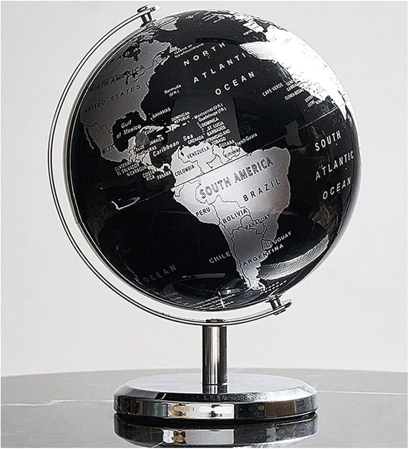 I globi sono eccellenti strumenti educativi e il modo perfetto per ispirare l'apprendimento e l'esplorazione della geografia mondiale. I globi forniscono un modo divertente per introdurre la geografia. Costituiscono ottimi strumenti di riferimento in classe. Plastica di protezione ambientale ingegneristica di alta qualità, base in metallo. Non facile da deformare e non facile da indossare. Realizzato in polistirene ad alto impatto con base in metallo for garantire il supporto del peso durante l'uso didattico o la decorazione della casa I paesi del globo sono identificati con lettere maiuscole for distinguerli dalle città mostrate in lettere minuscole Il mappamondo dettagliato con oceani argento, nero, grigio e arancione aggiunge un tocco di design ai design tradizionali