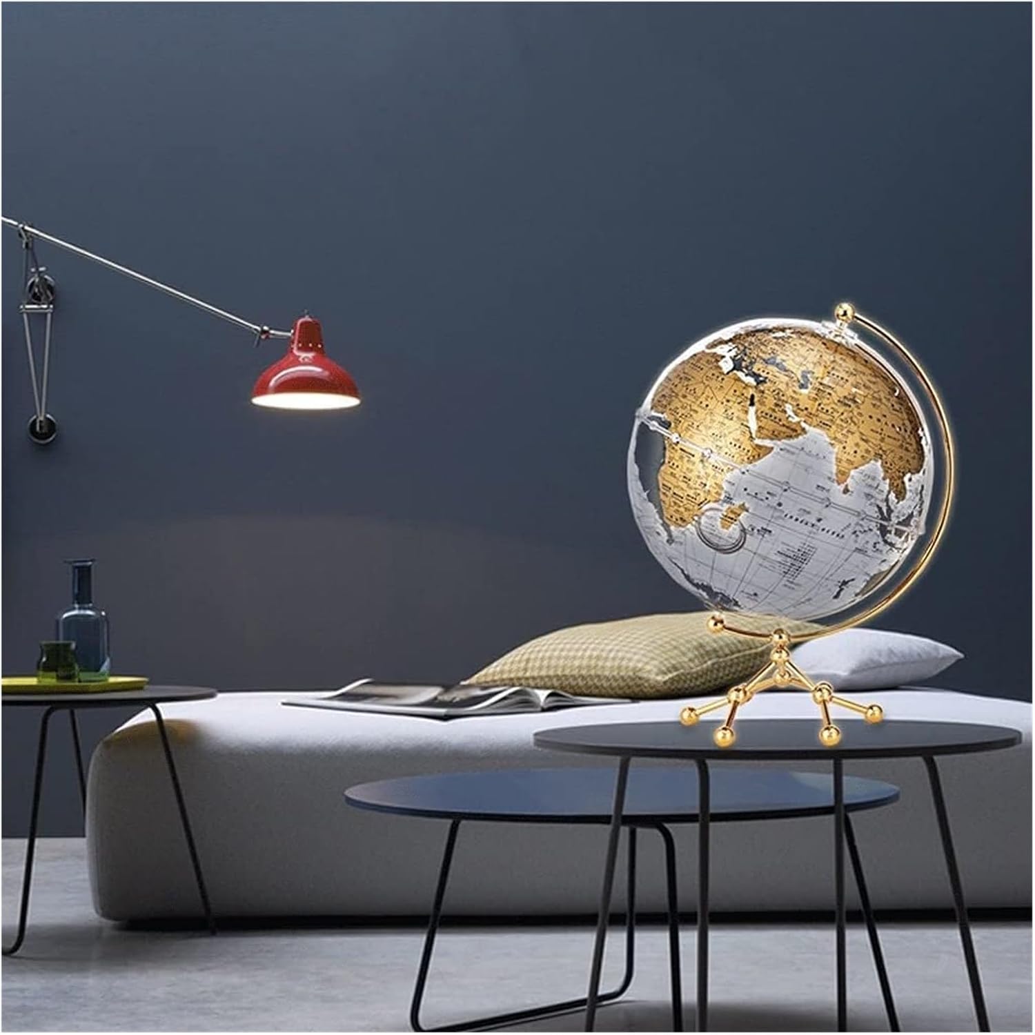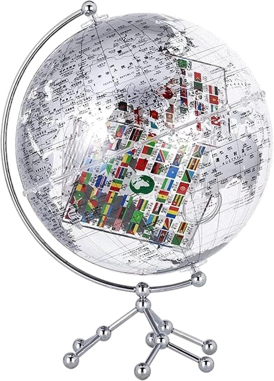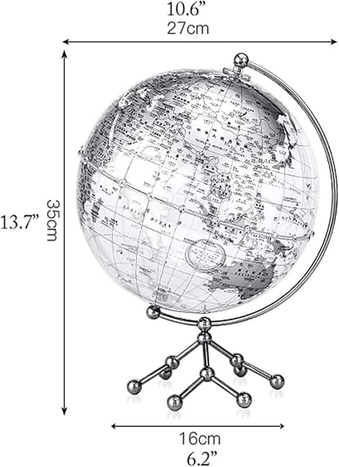 I globi sono eccellenti strumenti educativi e il modo perfetto per ispirare l'apprendimento e l'esplorazione della geografia mondiale. I globi forniscono un modo divertente per introdurre la geografia. Costituiscono ottimi strumenti di riferimento in classe. La sfera è realizzata in materiale (acrilico) ecologico, che ha una buona trasmissione della luce e stabilità chimica. La sfera di cristallo è resistente all'usura e impermeabile. Le perle equatoriali sono di squisita fattura, come il cristallo, e l'identificazione e l'isolamento sono più chiari; con un quadrante del tempo, la è chiaramente visibile e facile da identificare. La superficie della sfera adotta la tecnologia di serigrafia ad alta definizione, con gradazione di colore chiara, scrittura chiara, visione intuitiva e chiarezza a colpo d'occhio. La superficie della sfera è liscia e rotonda, la stampa della sfera è chiara e il contenuto è completo e facile da ricordare, permettendoti di esplorare ogni angolo del mondo in qualsiasi momento. (Diametro: 25 cm/9,8 pollici)