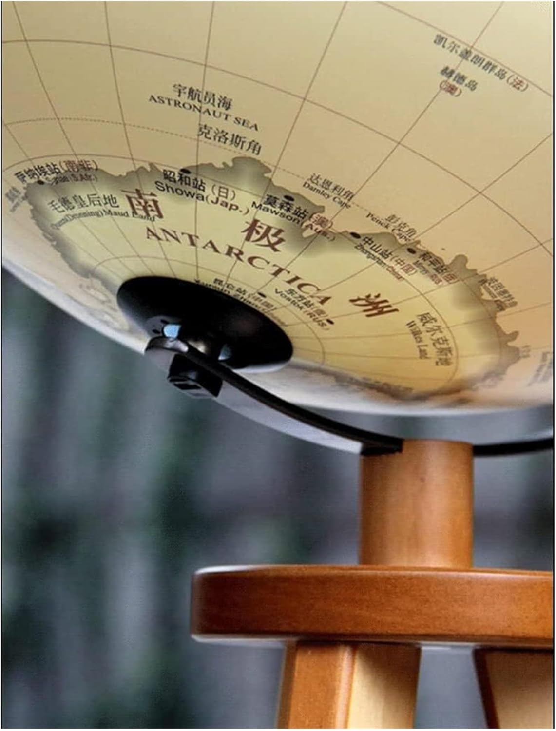 I globi sono eccellenti strumenti educativi e il modo perfetto per ispirare l'apprendimento e l'esplorazione della geografia mondiale. I globi forniscono un modo divertente per introdurre la geografia. Costituiscono ottimi strumenti di riferimento in classe. La superficie del nostro mappamondo è trattata appositamente for scrivere, marcare, ecc., è impermeabile e può essere conservata a lungo con una maggiore durata. Materiale della sfera: realizzato in ABS ecologico; materiale del telaio a sfera: legno, noce. Globo treppiede in legno da pavimento multifunzionale, puoi posizionare piante sullo scaffale, decorare libri, ecc. Il globo luminoso con supporto di facile lettura è realizzato in plastica resistente e liscia, che può essere facilmente ruotata con le .