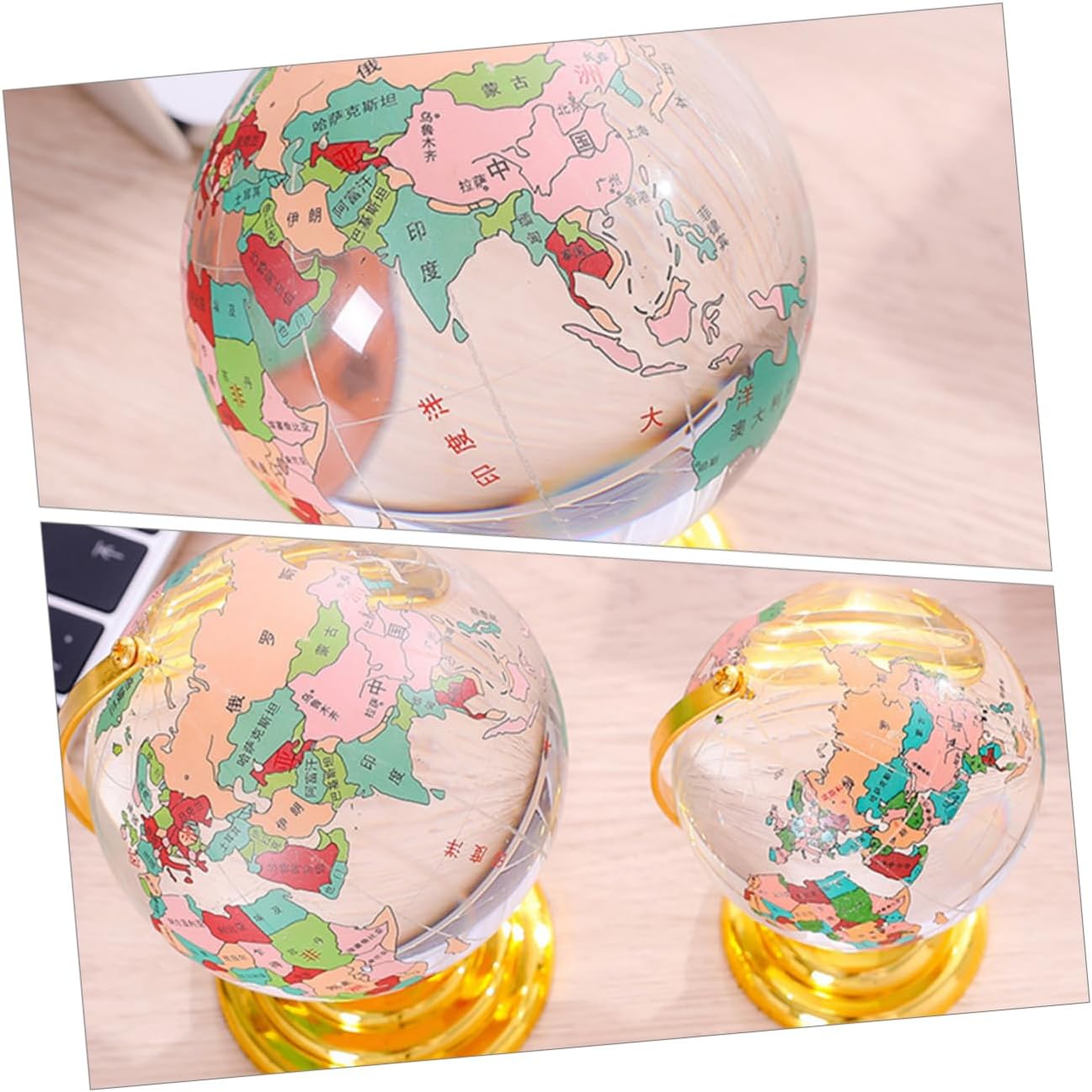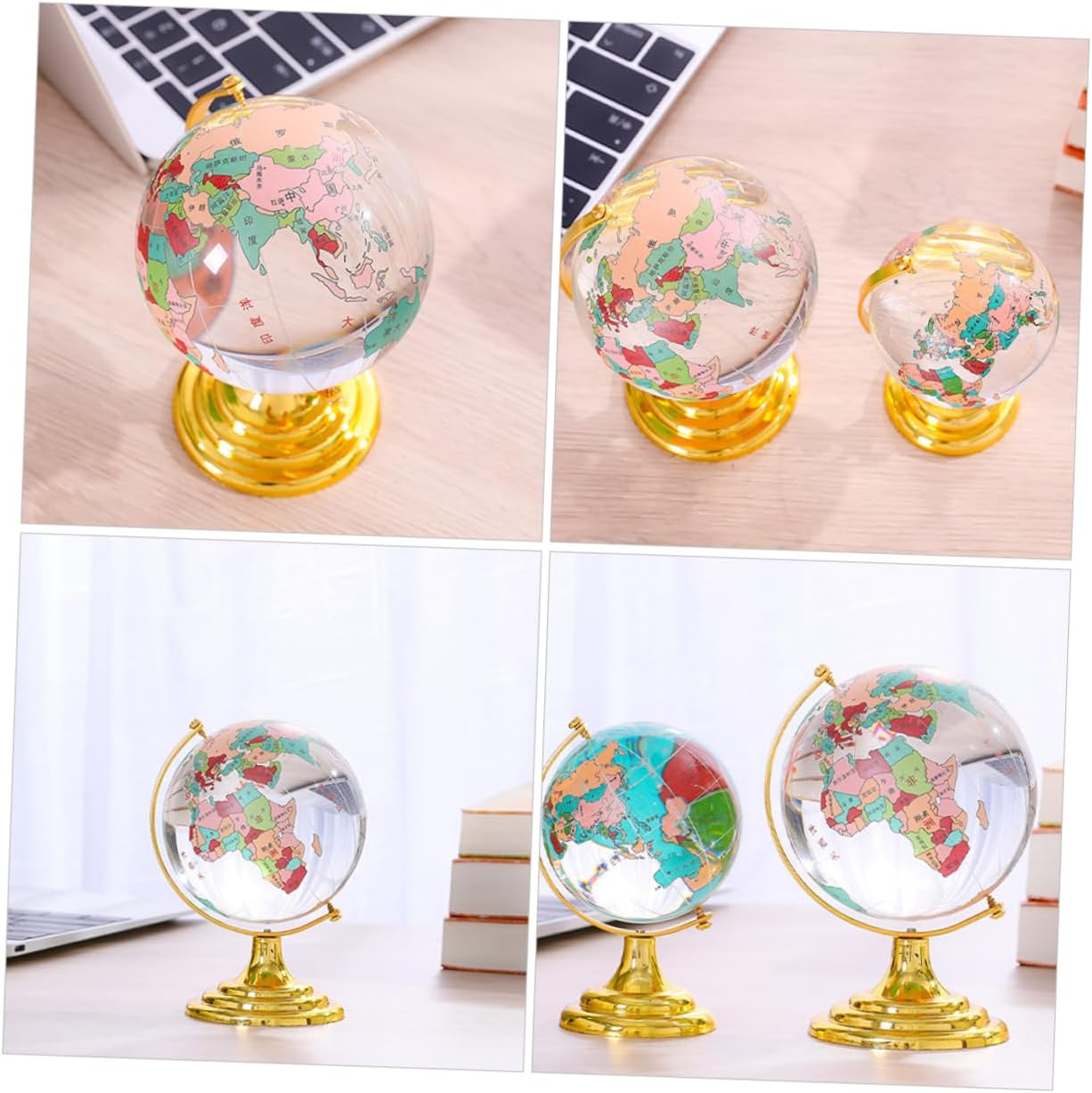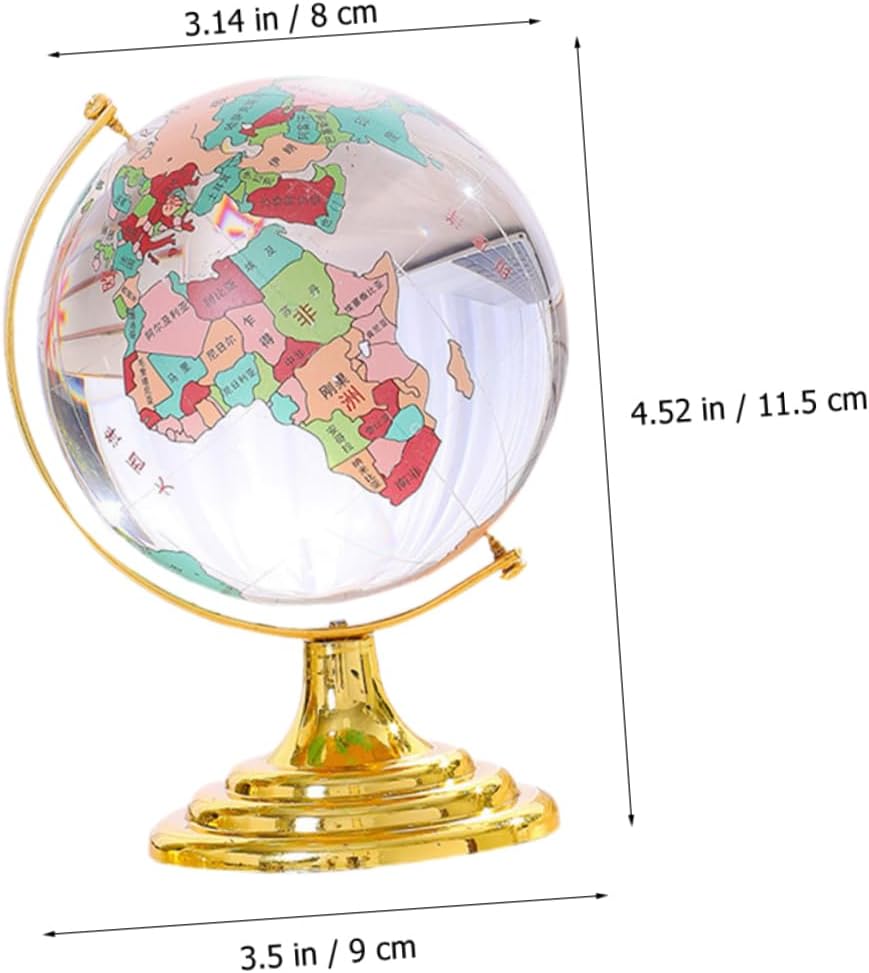 Mappamondo: l'ornamento da tavolo in cristallo è elegante ed elegante, aggiungendo un tocco di raffinatezza tuo spazio, mappamondo con supporto Globo di cristallo: il piccolo ornamento ha un design unico e creativo, che lo rende un ottimo di conversazione, globo da tavolo con base Mappamondo della casa delle bambole: l'arredamento del modello di globo di cristallo è una decorazione per la tua auto o ufficio, modello di globo Ornamento con sfera di palla di natale: l'ornamento del globo di cristallo è una decorazione artistica che aggiunge un tocco di tuo spazio, decorazione del globo da tavolo per la casa Ornamento per auto: l'ornamento è piccolo e compatto, facile da posizionare in auto o sulla scrivania, desktop con decorazioni in cristallo