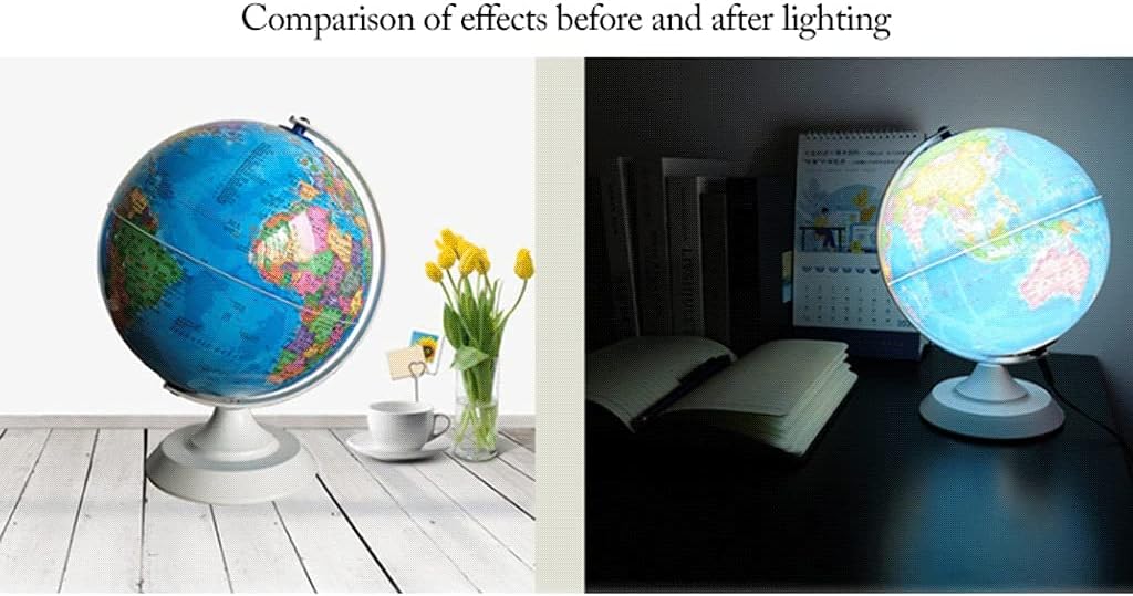 Mappamondo colorato: questo bellissimo e colorato mappamondo costituisce una meravigliosa aggiunta all'arredamento della tua casa, classe e sala giochi. Aiuta i tuoi figli a comprendere le idee del mondo, dei continenti, dei paesi e delle città con un globo interattivo ben progettato La mappa ecologica in plastica PVC con base in metallo bianco non è solo stabile, ma non si danneggia facilmente. Strumenti educativi: viaggia per il mondo con le tue dita sul nostro mondo educativo terrestre! Questo straordinario strumento di apprendimento è molto adatto per insegnare in classe o a casa. È uno strumento indispensabile per insegnare ai nostri figli le informazioni geografiche di base. Un globo che può essere utilizzato come lampada da scrivania, con luci a LED all'interno, la luce è morbida e non danneggerà gli occhi dei bambini Può essere riscritto, lavato con acqua e la superficie è liscia. Può essere contrassegnato per facilitare l'apprendimento dei bambini. Può essere strofinato. Dopo aver strofinato delicatamente, apparirà immediatamente bellissimo.