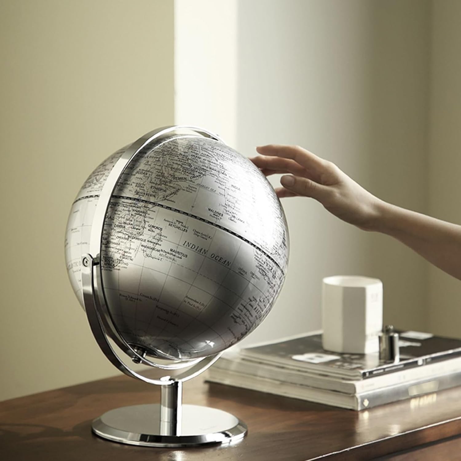 GLOBO IN METALLO: la superficie della sfera è spruzzata di metallo, la sfera ruota su un robusto supporto metallico. Utilizziamo i migliori materiali disponibili nel settore, tra cui acciaio inossidabile, inchiostro di alta qualità e così via. Punta a garantire che questo mappamondo sia un vero lusso, senza delusioni. STRUMENTI for L'APPRENDIMENTO DELLA GEOGRAFIA: la superficie verniciata metallizzata garantisce che il globo abbia una stampa ad alta definizione che non si danneggi facilmente. Mostra paesi, confini politici, capitali, città principali e altro ancora, sentiti libero di usarlo ogni giorno e di farvi riferimento in qualsiasi momento. GLOBO DI LUSSO: lavorazione di alta precisione e materiali di alta qualità fanno sì che la bellezza di questo globo non si rifletta solo nella sua superficie. Usalo come ornamento for la casa o l'ufficio o come regalo for coloro a cui piace decorare studi o caffè. Sono tutte buone scelte. DESIGN MODERNO DALL'ASPETTO IN METALLO: questo bellissimo globo argento e bianco è perfetto for chiunque desideri aggiungere un tocco di classe ed eleganza alla propria casa o ufficio. È disponibile in un'elegante combinazione di colori argento e bianco che attirerà sicuramente l'attenzione di tutti. REGALO A SCELTA: Mappamondo da tavolo che porta sia ornamento che conoscenza, aiuta a sviluppare conoscenze, abilità linguistiche e cognitive. Regalatelo ai tuoi amici che sono genitori, questo sarà il regalo di festa più necessario.