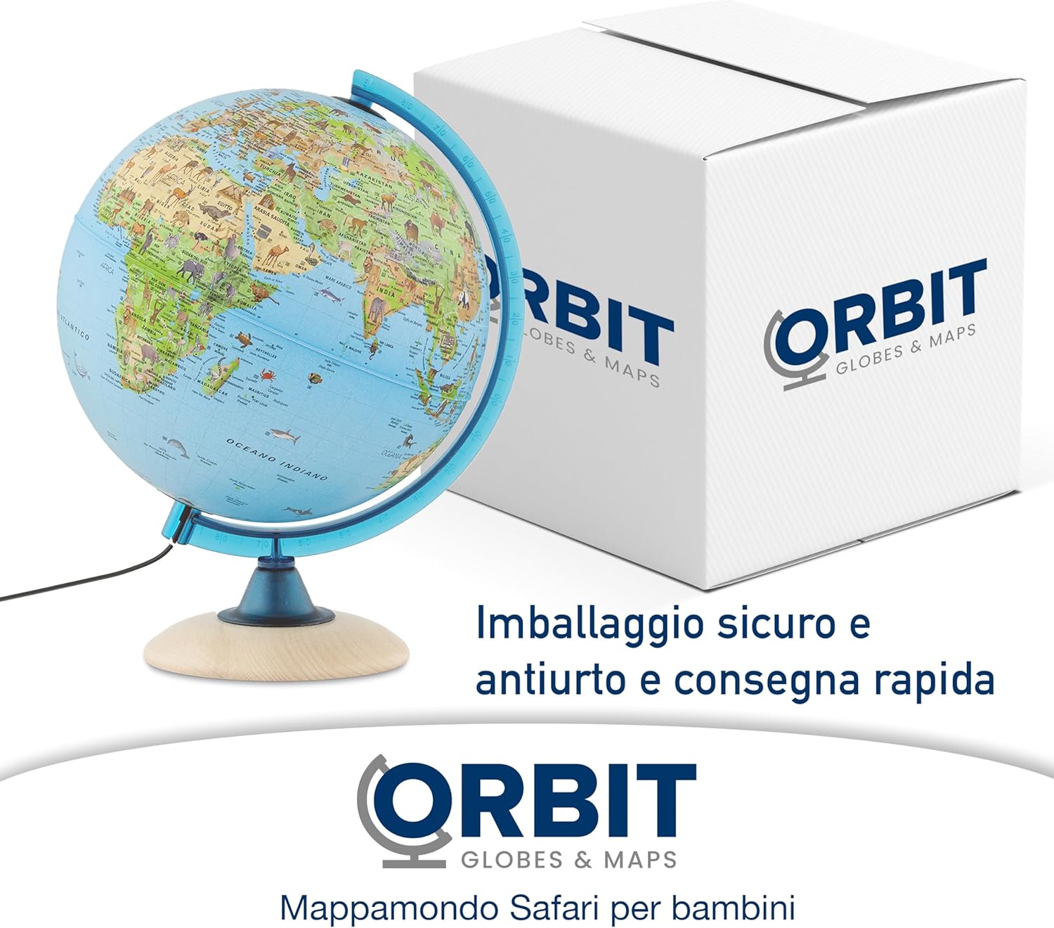 🌍 DIMENSIONE OTTIMA PER I BAMBINI - Il mappamondo ha un diametro di 25 cm e un'altezza totale di circa 35 cm, compresa la base. È quindi la dimensione perfetta per mostrare molti contenuti e allo stesso tempo essere facile da usare per i bambini. 🌎 ETICHETTA ITALIANA - Questo mappamondo illuminato è dotato di materiale cartografico italiano con molte illustrazioni aggiuntive di animali ed edifici famosi, adatte ai bambini. Tutte le etichette riportano i nomi dei Paesi e delle città italiane. 🌏 LED LUMINOSO A RISPARMIO ENERGETICO - Il globo è illuminato da una lampada a LED (E14, 2W) che ne facilita la lettura anche al buio. 🌎 STABILE E DI ALTA QUALITÀ - Il mappamondo poggia su una base di legno stabile e rotante. Nel complesso un regalo bello e decorativo, perfetto come lampada da comodino.