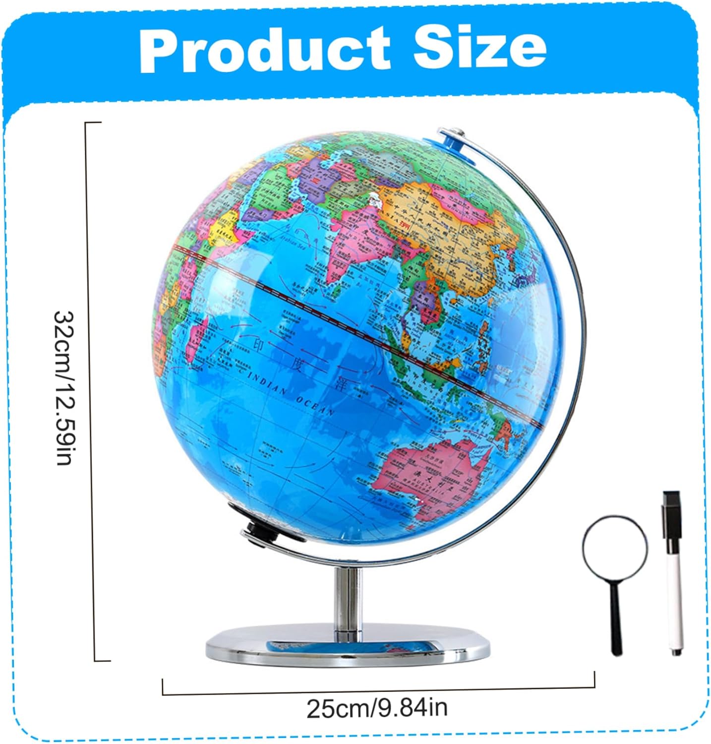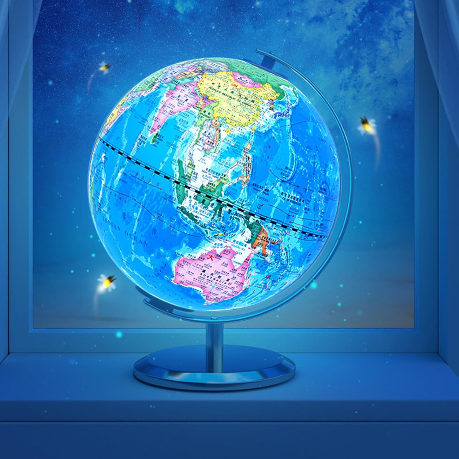 Globo animale interattivo: il nostro globo animale interattivo consente ai bambini di esplorare il regno animale sempre e ovunque..Caratterizzato da chiare illustrazioni di animali e approfondimenti sui paesi, offre un'esperienza di apprendimento coinvolgente sullo schermo, suscitando curiosità e favorendo l'apprendimento precoce. Superficie scrivibile: la superficie del globo è progettata per essere scrivibile, consentendo agli utenti di scrivere con pennarelli, prendere appunti e pulire facilmente la superficie liscia..Questa funzionalità fornisce maggiore versatilità e comodità per esperienze di apprendimento interattive. Copertura visiva a 360 gradi: esplora il mondo da tutte le angolazioni con il nostro globo rotante..Ammira la bellezza della Terra da ogni prospettiva, consentendo una facile esplorazione per il tuo bambino. Stabilità: realizzato in metallo placcato liscio, il supporto per mappamondo garantisce stabilità e oscillazioni minime, fornendo un supporto sicuro ai bambini per far girare il mappamondo con facilità..La costruzione garantisce stabilità duratura, rendendo i viaggi di apprendimento sicuri e divertenti per i giovani esploratori. Luce notturna a LED: con la nostra luce notturna a globo a LED, i bambini possono divertirsi con avventure di apprendimento anche dopo il tramonto..La lampadina LED di qualità emette una luce calda e brillante, perfetta per le favole della buonanotte o per le lezioni di geografia a tarda notte..Alimentato tramite interfaccia USB, questo strumento educativo migliora l'estetica di ogni stanza dei bambini.
