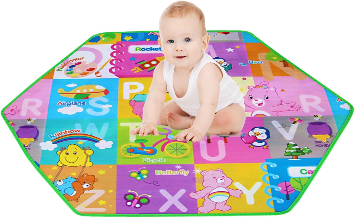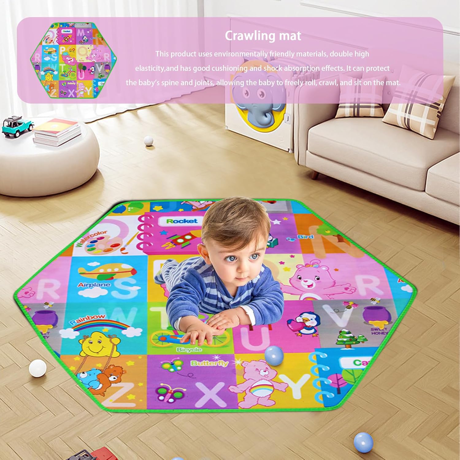 Miglioramento educativo: l'esperienza di apprendimento di tuo figlio con il nostro tappetino che strisciano! Il nostro design educativo presenta modelli che stimolano le loro capacità percettive, aiutandoli a sviluppare le loro capacità visive, tattili e cognitive mentre giocano. Altamente elastico e morbido: il nostro tappetino da astuzia è progettato con un materiale ecologico che offre un eccellente comfort ed elasticità. Le superfici morbide e impermeabili rendono facile da pulire e offre spazio sicuro per il tuo bambino di strisciare, giocare e imparare garantendo al contempo la loro sicurezza. Sicurezza Prima: questo tappetino che strisciano assicura il tuo bambino può rotolare, strisciare, sedersi e stare senza disagio. Le eccellenti capacità di shock e buffering del tappetino offrono un atterraggio morbido proteggendo le articolazioni e la colonna vertebrale del bambino. Il suo design anti-slip garantisce la massima sicurezza. Eccellentemente realizzato: questo tappetino strisciante è ben realizzato con la di ritorno-texture che non è facile cadere, crack o deformare. I bordi avvolti lo rendono più bello e non facile nascondere polvere e macchie. È forte, resistente e resistente all'usura, garantendo una vita di servizio più lunga per il tuo bambino. Caratteristica regolabile: questo tappetino strisciante è costituito da più giunzioni esagonali circolari che danno al bambino spazio di attività maggiore. È facile da regolare e in di essere combinato, smontati e conservati liberamente secondo necessità.