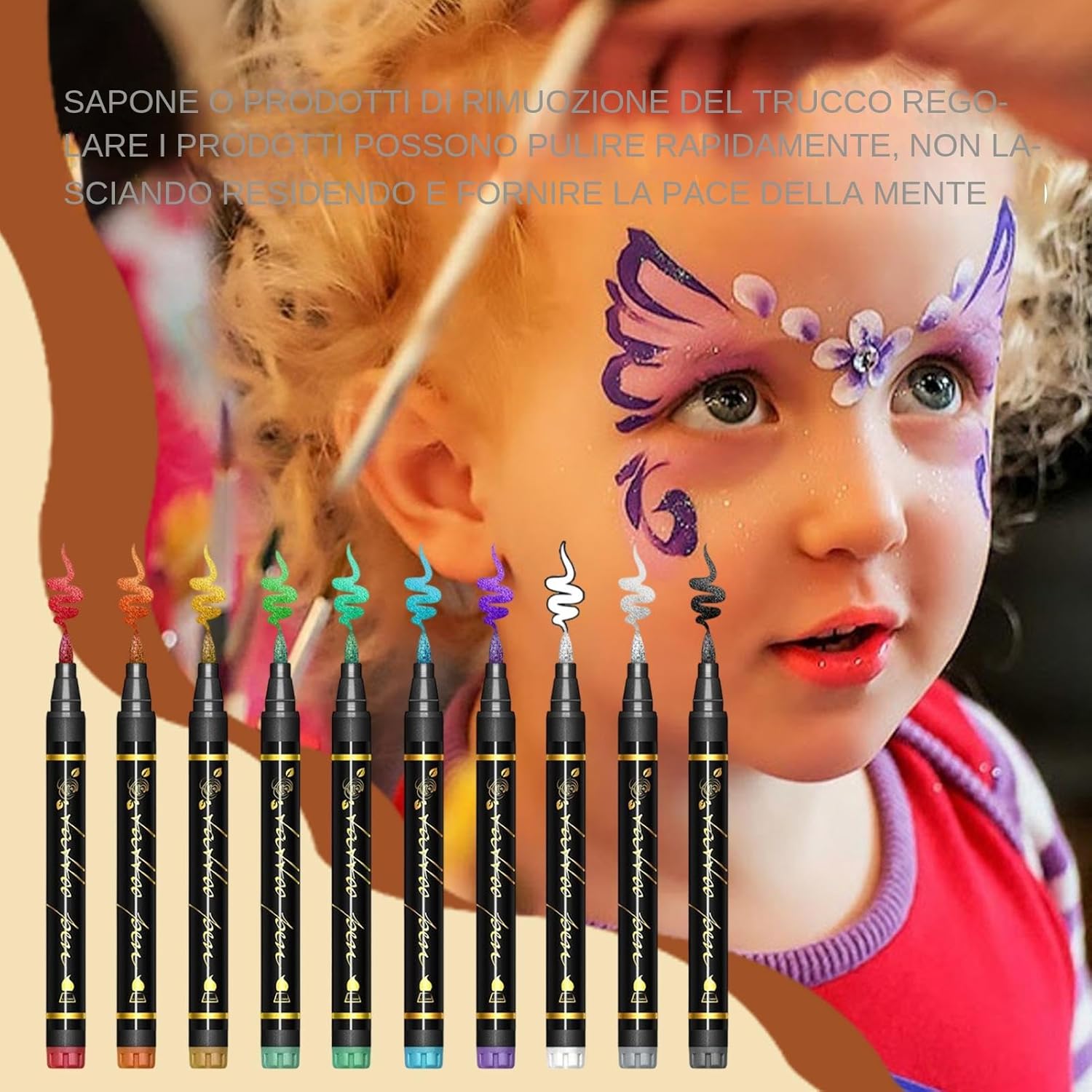 Design Impeccabile:Garantisci pattern meticolosi grazie a contorni controllabili e regolazione o spessore, ottenendo risultati creativi impeccabili per ogni progetto artistico. Contiene 198 caratteri (: "con precisione" aggiunto) Rimozione delicata: Progettati con ingredienti sicuri per la pelle, i marker corporei si eliminano completamente con prodotti per l'igiene comune adatti a ogni incarnato durante applicazioni creative Occasioni Multiple: Set da 10 penne adatte a decorazioni diversificate, facilitano il disegno giornaliero e lo sviluppo di stili di pattern unici per variazioni artistiche illimitate Precisione Affidabile: Puntina larga garantisce stabilità nella presa e tratto scorrevole, producendo linee nitide attraverso erogazione uniforme 'inchiostro Design a Strati: Combina dieci colori vivaci per disegni stratificati che migliorano gli effetti visivi e stimolano l'espressione creativa in ogni creazione con body markers.