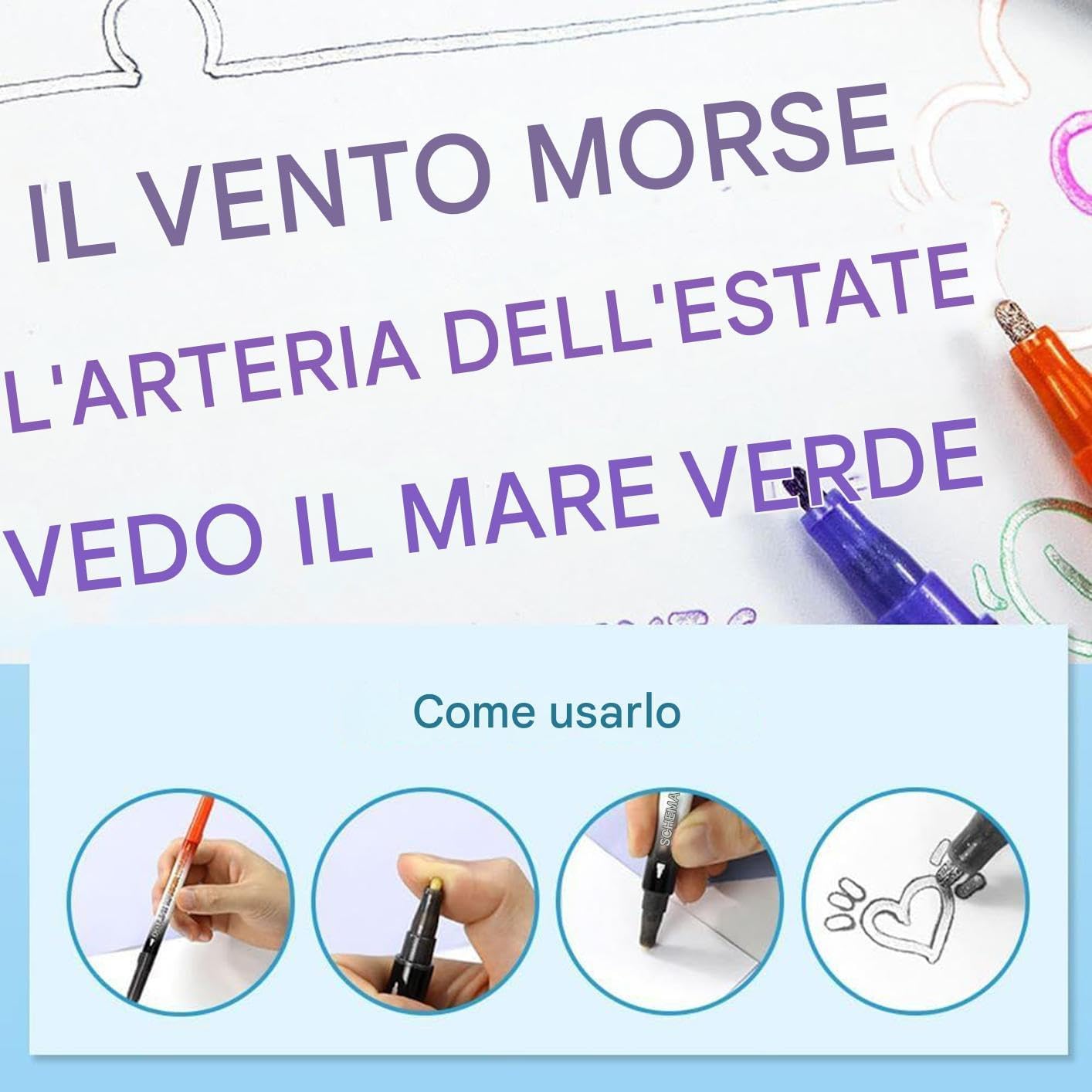 Occasioni Varie: Strumenti pratici per la pianificazione degli insegnanti o vivaci premi per la classe, questi marker evidenziatori brillano nelle feste artistiche e diventano apprezzati per attività creative in famiglia e tra amici. Design Compatto e Leggero: Con una forma sottile che si adatta ad astucci e borse, questi evidenziatori sono eccellenti per prendere appunti, studiare, pianificare attività e organizzare agenda in contesti scolastici, universitari o Divertimento Creativo con Marcatori: Grazie ai colori ricchi e vivaci e alla scorrevolezza senza sforzo, questi marcatori infondono vita immediata nei tuoi progetti. Ideati per accendere la fantasia e rendere ogni foglio più piacevole e coinvolgente. Mani rilassate: L'impugnatura ergonomica è studiata per minimizzare la fatica durante la scrittura prolungata a scuola o in viaggio, donando un'esperienza scorrevole e naturale senza sforzo aggiuntivo Punta Fine: Tracciate linee nitide e precise con la punta fine da 0.7mm, versatile per scrittura e disegno, migliora la qualità del lavoro, ideale per contorni e riempimenti grazie al flusso d'inchiostro regolare