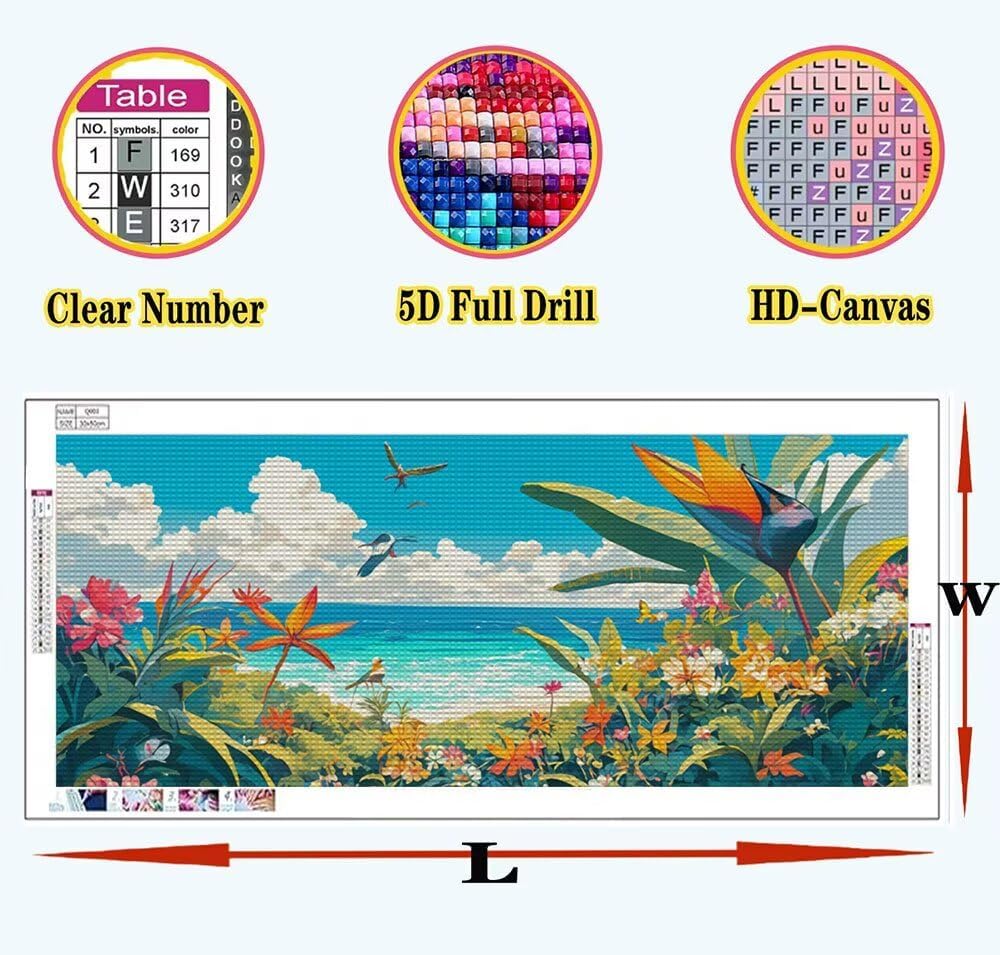 Mare Diamond Painting Kit Completo, Fiore Diamond Painting Bambina 90x180cm DIY Full Drill Ricamo Crystal Art , 5D Bambini Per Pittura Diamante Principianti Per Pittura Diamante Wall Decor A-U264
