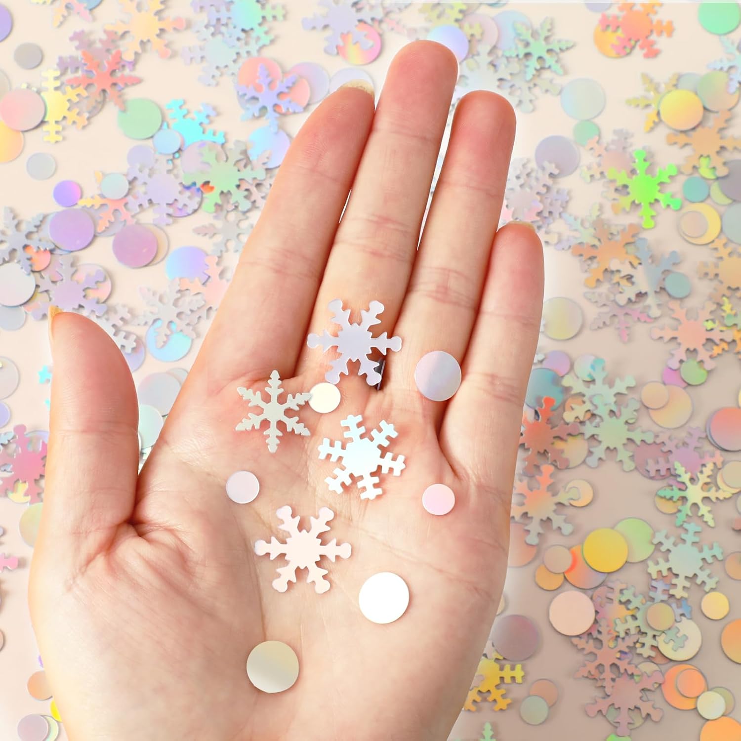 Coriandoli iridescenti con fiocco di neve: i nostri coriandoli a fiocco di neve sono progettati in colore iridescente, che non solo brilla sotto la luce, ma ha anche un affascinante effetto argento. I coriandoli invernali sono una decorazione ideale per feste invernali nel paese delle meraviglie e feste di Natale, e i coriandoli di Natale con fiocchi di neve sono molto adatti come coriandoli decorativi per tavoli da pranzo, consentendo di creare facilmente un'atmosfera da sogno e lasciare che ogni angolo risplenda con fascino festival Materiale affidabile: le decorazioni a fiocco di neve sono realizzate in PVC di buona qualità, lucido su entrambi i lati, spesso e ha una buona durata, a prova di umidità e può essere riutilizzato. Dopo un uso a lungo termine, i coriandoli con fiocchi di neve per l'inverno possono ancora mantenere il colore originale e l'effetto lucido, attirando l'attenzione ed è una meravigliosa scelta per le feste Design unico: i coriandoli glitterati a forma di fiocco di neve hanno un design squisito e una varietà di forme uniche di fiocchi di neve e paillettes lampeggianti portano un incredibile effetto argento, che rende ogni fiocco di neve glitter unico. Con coriandoli rotondi a fiocco di neve, i coriandoli invernali emanano affascinante brillantezza, aggiungono un senso di stratificazione nella decorazione delle vacanze e diventano il fulcro visivo della festa Squisita decorazione: puoi spargere i coriandoli di fiocchi di neve di Natale sul tavolo da pranzo, decorare l'albero di Natale, riempire biglietti d'invito, decorare torte e persino utilizzare le decorazioni a fiocco di neve per confezioni regalo, in modo da dare gioco completo alla tua immaginazione, creare un'atmosfera unica e rendere le tue celebrazioni più colorate Scenario di applicazione: questi coriandoli glitterati a fiocco di neve sono molto adatti per varie occasioni di celebrazione, tra cui Natale, feste di compleanno, matrimoni, addio al celibato, decorazioni invernali, baby shower e così via. Che si tratti di una riunione di famiglia, di una riunione annuale aziendale o di un evento natalizio scolastico, le decorazioni a fiocco di neve possono aggiungere un tocco di colore e gioia alla tua occasione, rendere le tue feste più vivaci e interessanti e portare ricordi indimenticabili a parenti e amici