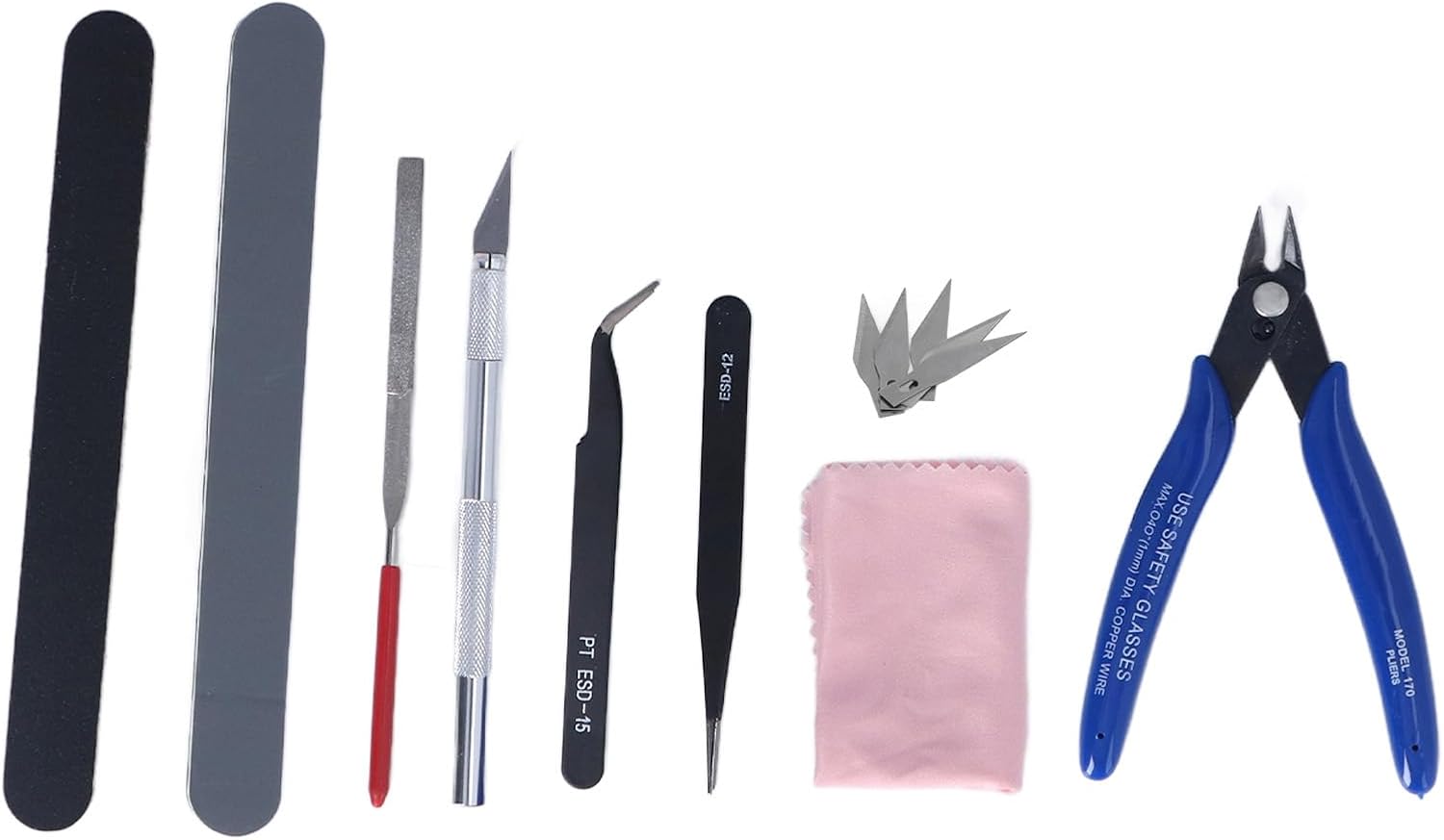 [Migliore effetto di pulizia e intaglio] - Migliora la tua esperienza di costruzione di modelli con questo set di strumenti progettato per pulire e intagliare giocattoli, automobili, robot e mestieri. [Vari strumenti utili] - Include pinze di punta obliqua, pinzette di punta dritta, file, coltello intagliato e altro ancora gamma di applicazioni. [Materiale premium] - Realizzato in acciaio in lega resistente per un uso duraturo in aule, laboratori e stampa 3D. [Pratico e facile usare] - Strumenti convenienti sia per i principianti che per gli utenti esperti. [Leggero e portatile] - Progettazione compatta per facile stoccaggio e trasporto nella scatola di stoccaggio inclusa.
