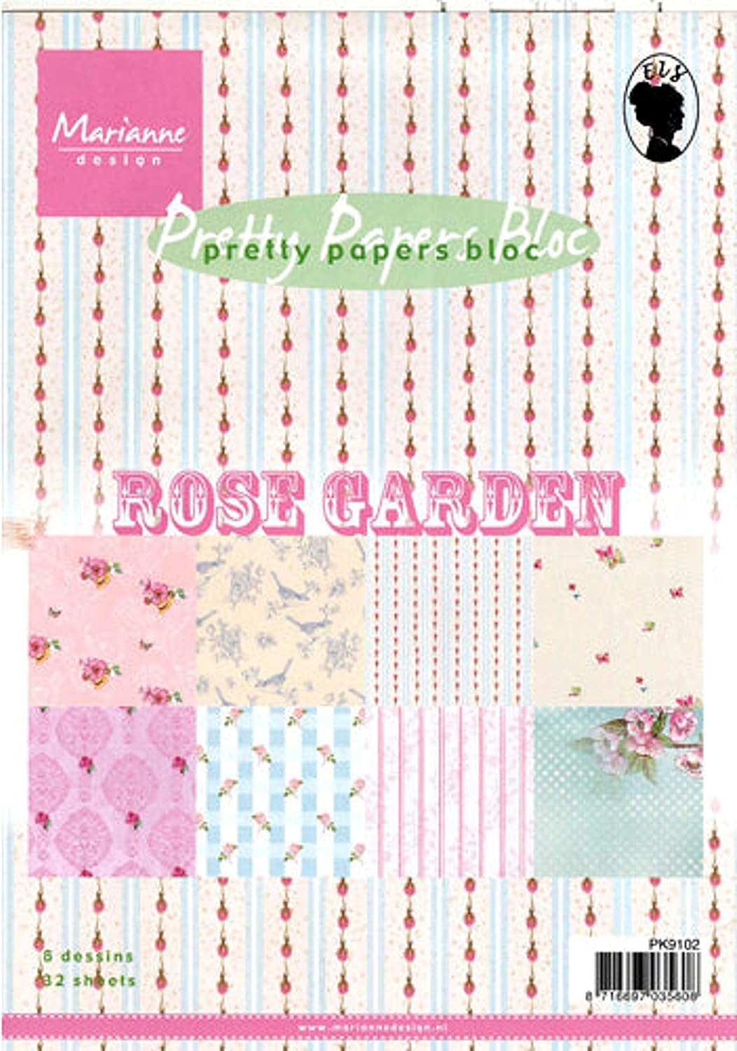 Blocchi di carta graziosi di Marianne, carte Rose Garden Marianne Design Pretty Bloc, rosa pastello e blu, 8 disegni, 32 fogli Prodotto artigianale in carta Numero modello: PK9102