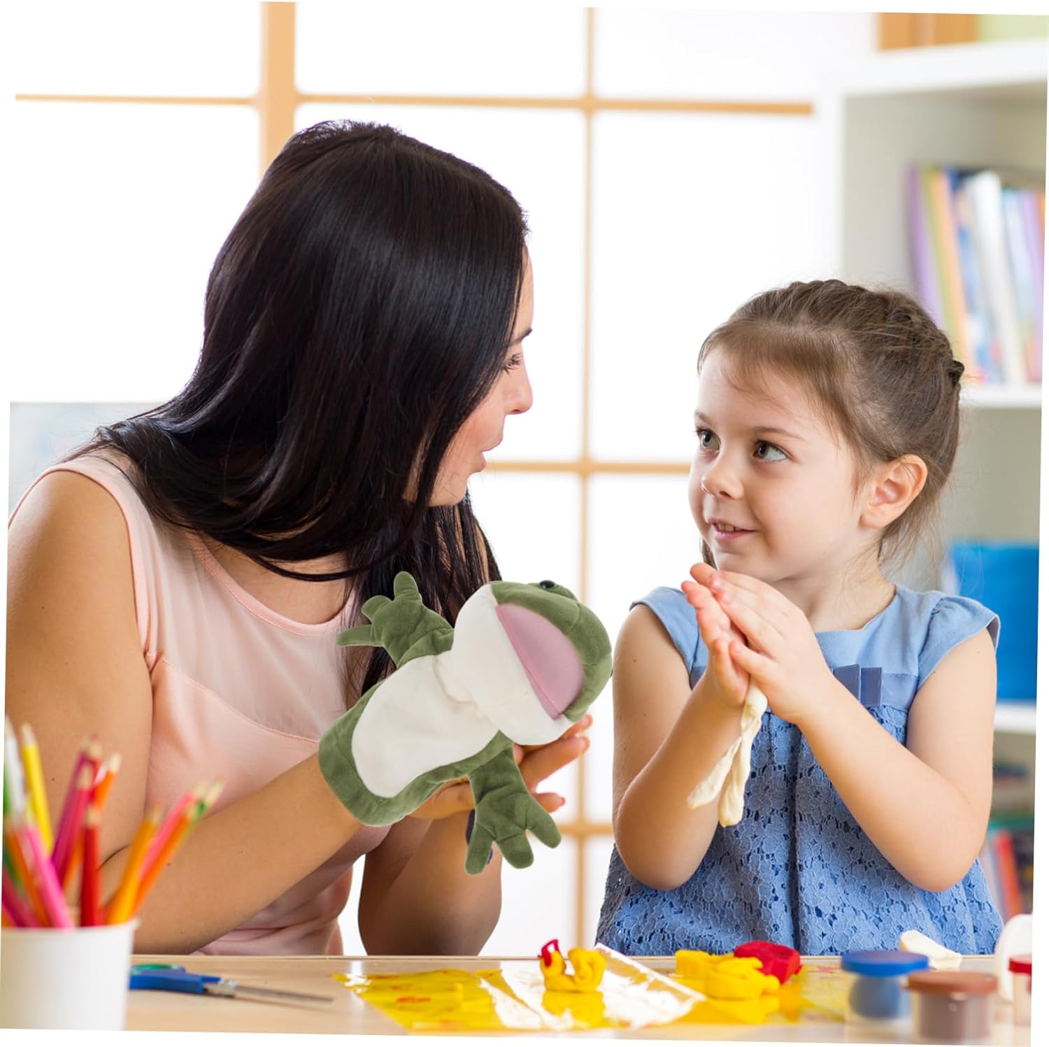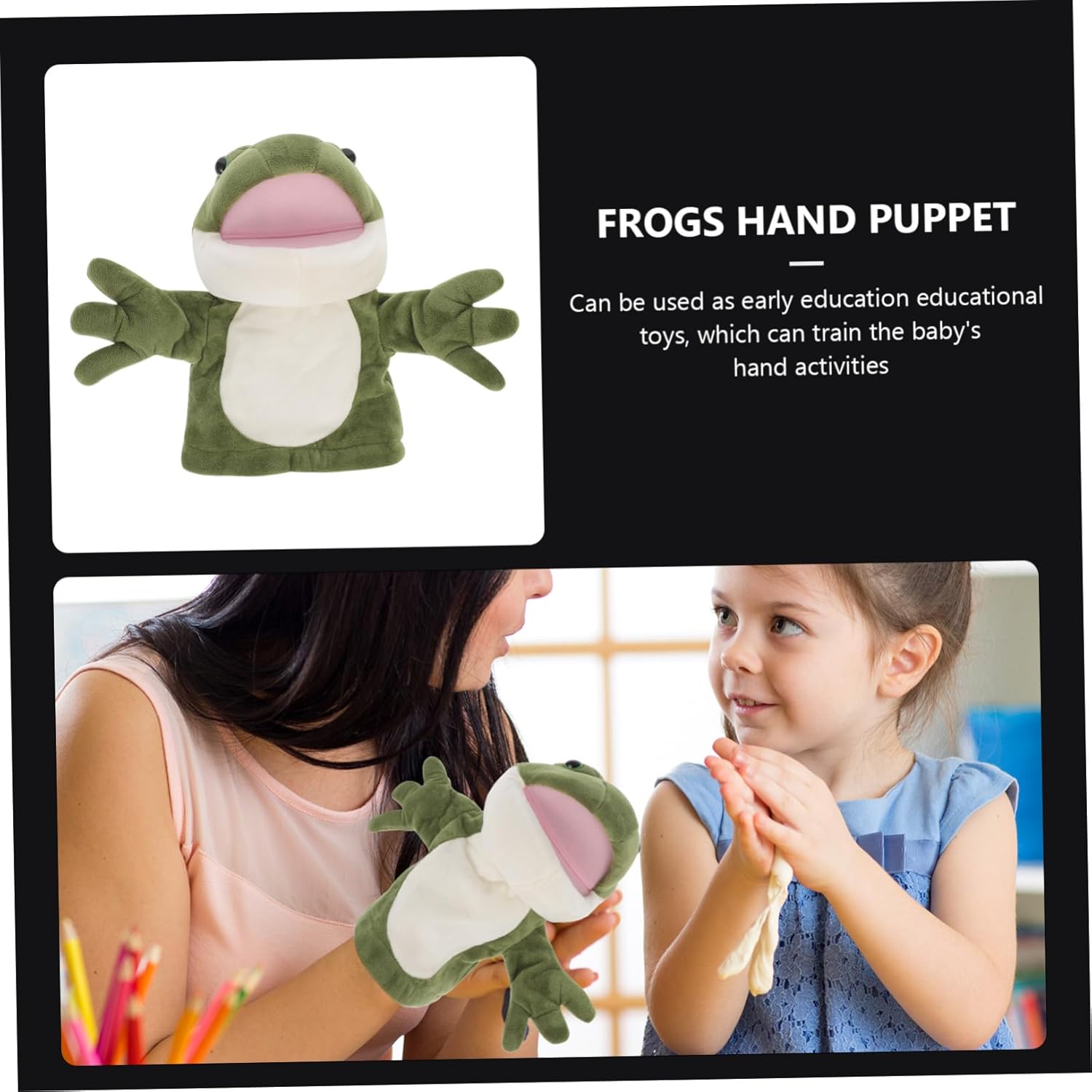 Burattino a mano a forma di rana - ottimo strumento per attività genitore-figlio o come giocattolo didattico per la scuola materna, burattino a mano Giocattolo di peluche interattivo - inserisci la tua mano in un adorabile burattino a mano e poi puoi iniziare a giocare, burattino a mano a forma di cartone animato Burattino a mano per - questo adorabile burattino a mano a forma di rana cartone animato è molto interessante e creativo e racconta storie Burattino a mano a forma di rana - ideale per attività di immaginazione e interattive, migliora le capacità di comunicazione e la relazione genitore-figlio, burattino a mano per giochi di ruolo Burattino a mano in peluche - adatto per narrazione, spettacoli artistici, burattino a mano interattivo e altro, burattino a mano con animale