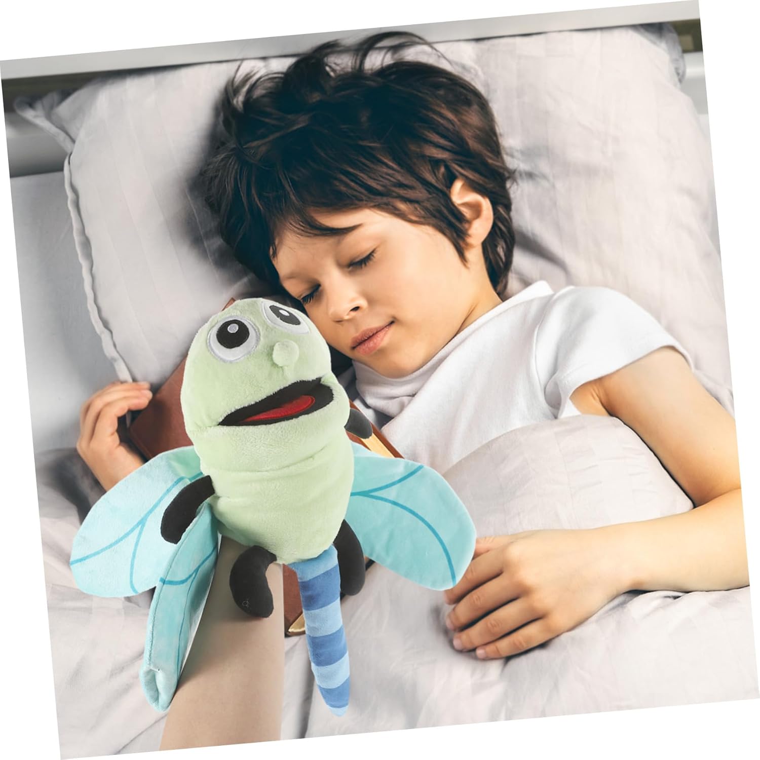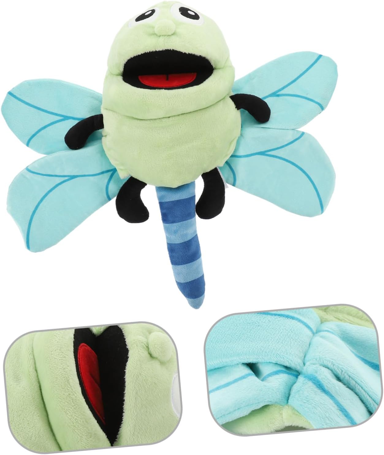 Giocattolo della libellula: un gioco interattivo pensato per portare gioia e divertimento ai bambini durante la loro infanzia. Giocattolo di peluche a forma di libellula per burattini a mano: eccellente per le capacità motorie, coordinazione occhio-mano, capacità di comunicazione e costruzione della fiducia in se stessi, bambole di peluche: forma bella e carina, porta ai tuoi bambini un divertimento infinito e stimola l'immaginazione, è la scelta per il tuo burattino a mano, peluche per bambini: il nostro burattino a mano è realizzato in morbido cotone PP e materiali peluche, che sono morbidi e comodi, lavabili e facili da pulire, Marionetta di peluche a forma di libellula: l'adorabile burattino a mano con libellula può essere portato comodamente sulla mano ed è l'ideale per