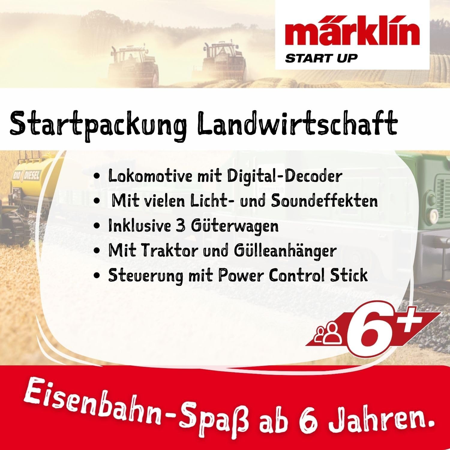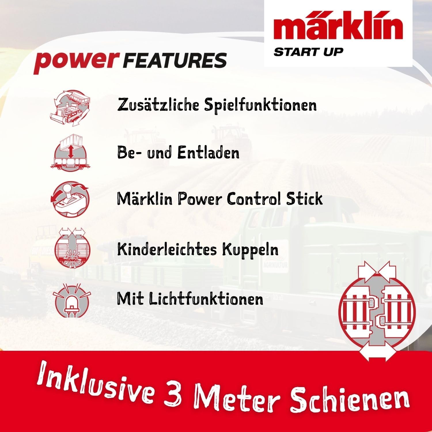 Ingresso diretto nel mondo Märklin: set completo con locomotiva digitale, carro, binario ovale con scambi, centralina e accessori - ideale per famiglie, bambini dai 6 anni e principianti. Tecnologia digitale e divertimento: Locomotiva con Decoder mfx, fari dipendenti dalla direzione e luci lampeggianti - facile da controllare con il Märklin Power Control Stick. Agricoltura da toccare con mano: carro a sponde basse con macchine agricole realistiche (falciatrici, aratri), trattori e rimorchi per letame: gioco creativo garantito. Espandibile e flessibile: il sistema C-track può essere ampliato a piacere, gli scambi possono essere dotati di azionamenti elettrici - cresce con le esigenze dei piccoli e grandi appassionati ferroviari. Qualità Märklin: costruzione robusta, giunti Relex per un facile accoppiamento, modelli dettagliati - regalo perfetto per bambini, famiglie e persone che ritornano allo sport.