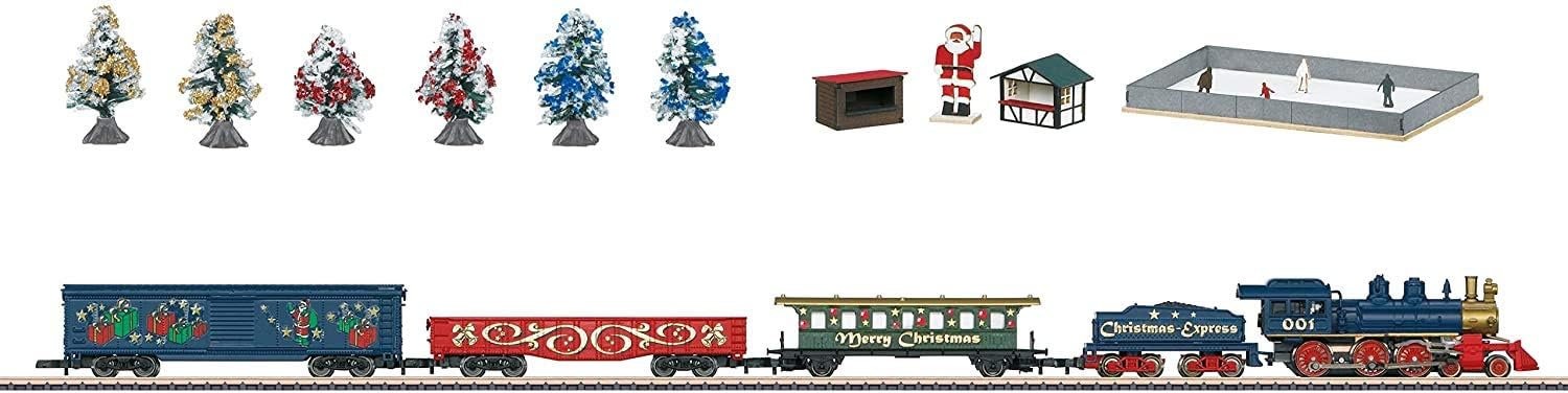 La ferrovia di serie più piccola del mondo: ampia pista Z start-up in design natalizio. Scala 1:220, la locomotiva è lunga 5 cm e alta 1,5 cm Locomotiva a vapore in metallo per un peso elevato e quindi particolarmente buono sviluppo della forza sui binari. Tira anche lunghi treni! Inoltre, oltre a 6 mini alberi di Natale decorati, sono inclusi anche mini kit "buden", "Babbo Natale" e "pista di pattinaggio", che dopo il montaggio creano un piccolo mercatino di Natale invernale. Contenuto del set: 2 binari dritti, 10 binari curvi, ausilio per il binario e alimentatore di commutazione da 230 V/12 VA con regolatore di marcia abbinato. Opuscolo del binario. L'espansione perfetta può avvenire anche con 82720, con i pacchetti SET 8190 o 8191, 8192, 8193 e 8194, o secondo i propri disegni con tutti i modelli della gamma Märklin Spur Z.