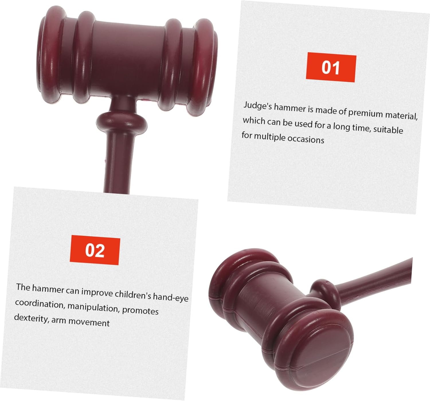 Martello Prop - Il martello è facile da usare e multifunzionale e può essere utilizzato in molte occasioni, come: b. Come giocattolo per bambini, come martelletto da giudice nei giochi di ruolo per le riunioni in tribunale o come martelletto da avvocato. Martelletto del giudice per l'aula di tribunale: il martelletto del giudice può essere utilizzato in molte occasioni, ad es. B. Come giocattolo per bambini, come supporto per martello da giudice nei giochi di ruolo per riunioni in aula o come supporto per martello da giudice Accessori per martello da giudice - il martello giocattolo fornisce esercizi di allenamento per le mani che possono promuovere lo sviluppo dei muscoli dei bambini, supporto per aula di tribunale Martello da giudice - il martello è leggero, puoi trasportarlo facilmente e comodamente e divertirti, Martelli da giudice Martelli da giudice - solidi -, il suono è chiaro e forte, molto adatto per aste, martello da tribunale