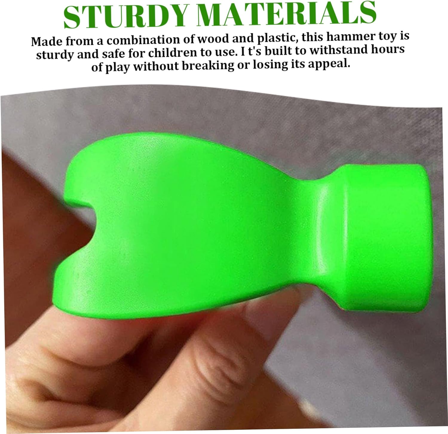 Portatile e leggero: il design compatto di 6,50 x 3,15 pollici rende questo martello facile da trasportare e ideale per i viaggi. Che tu stia andando al parco, a scuola o in visita alla famiglia, è il compagno perfetto per l'intrattenimento in movimento. Perfetto per ragazzi e ragazze: che sia per un compleanno, una vacanza o la scuola, questo martello portatile per bambini è una scelta eccellente per ragazzi e ragazze. È emozionante e premuroso per i bambini di diverse età. Educativo e divertente: progettato per coinvolgere i bambini nel gioco interattivo, questo martello giocattolo di simulazione aiuta a migliorare la coordinazione occhio-mano, le capacità motorie e lo sviluppo cognitivo. È un giocattolo perfetto per l'apprendimento creativo. Materiali robusti: realizzato con una combinazione di legno e plastica, questo giocattolo a martello è robusto e sicuro per i bambini. È costruito per resistere ore di gioco senza rompersi o perdere il suo fascino. Design luminoso e accattivante: i colori vivaci e il design unico di questo martello educativo per bambini attireranno l'attenzione dei bambini e li terranno impegnati in giochi fantasiosi per ore.