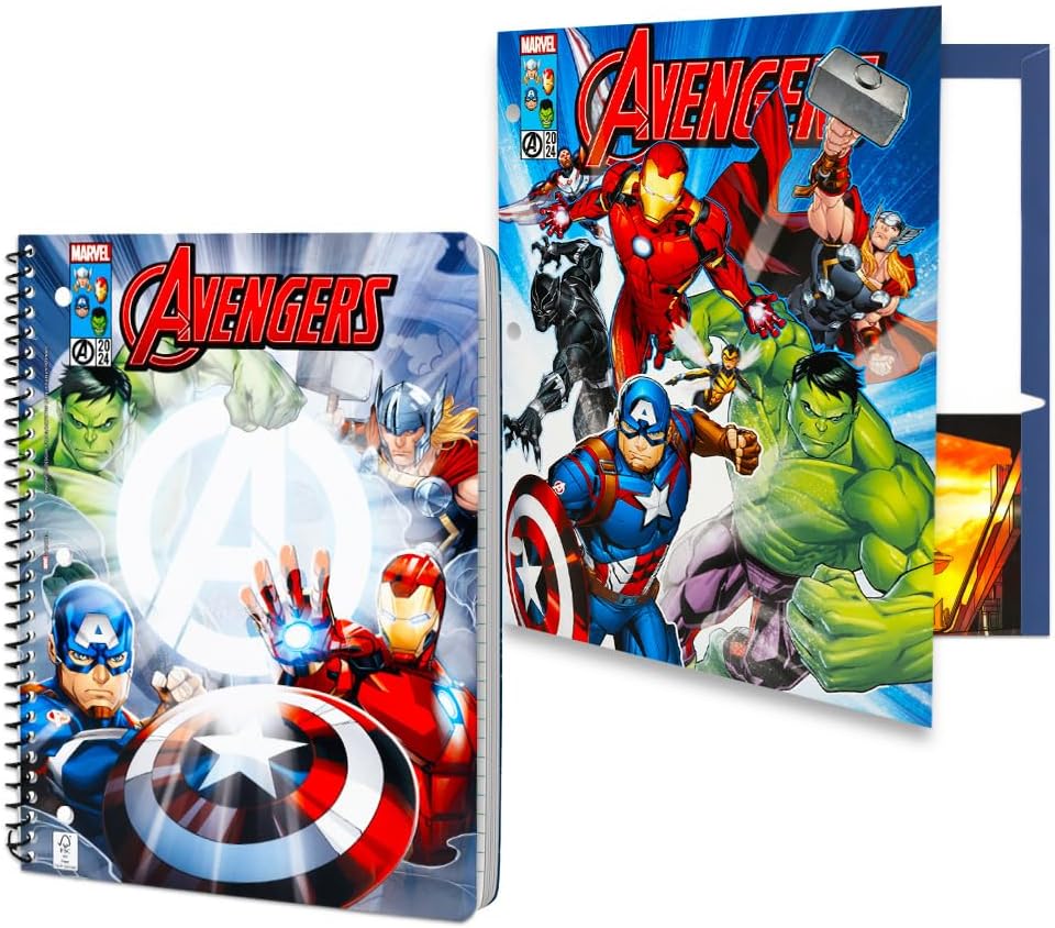Marvel Avengers Back to School Value Pack – Confezione da 12 pezzi con cartella Captain America, quaderno Iron Man, matite, gomma, adesivi, altro per bambini | Forniture scolastiche di supereroi Preparati per la classe con questo set Marvel Avengers per tornare a scuola con Marvel Heroes preferiti: Spiderman, Capitan America, Iron Man, Hulk e molto altro ancora! Il set di forniture scolastiche Avengers include 1 cartella portfolio supereroi, 1 quaderno soggetto Avengers con 40 fogli, 1 gomma, 1 temperamatite, 6 matite Avengers, oltre 300 adesivi Avengers e pennarelli adesivi a linguetta. Perfetto per qualsiasi fan dei Vendicatori o supereroi. Il set di forniture scolastiche Avengers rende fantastico qualsiasi giorno scolastico! Tutti i prodotti scolastici Marvel Avengers sono ufficialmente autorizzati. Perfetto come regalo Marvel Avengers per il ritorno a scuola. Include anche tatuaggi temporanei Avengers e appendiabiti da porta supereroe Beach Kids.