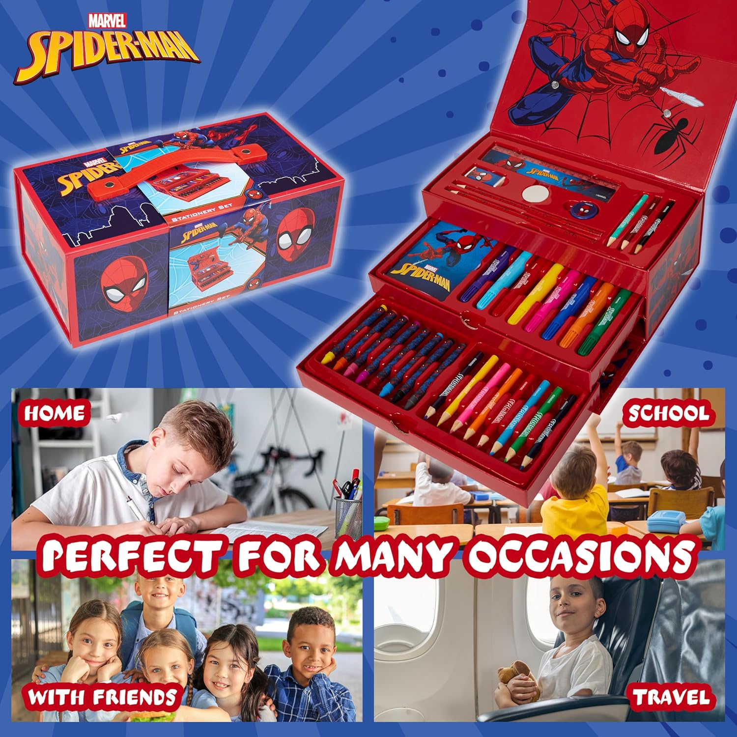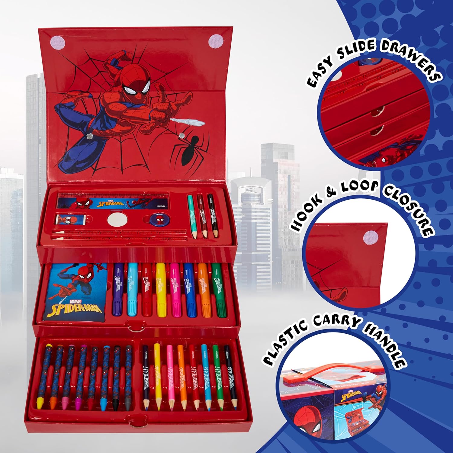 Marvel Valigetta Colori Spiderman - Scatena la creatività di tuo figlio e intrattienilo con i nostri kit pittura bambini Marvel. Questi set sono ricchi di tutto il materiale artistico necessario per offrire ore di divertimento e intrattenimento al tuo piccolo supereroe. Contenuto del Set Artistico - All'interno di questo astuccio Spiderman troverai tre livelli pieni di pastelli, matite colorate, un set di pennarelli, un blocco note da 10 pagine, una gomma, una matita HB e altro ancora! Guarda le immagini per vedere la gamma completa di contenuti inclusi in questo fantastico set pittura bambini. Incoraggiare l'apprendimento Creativo - Promuovi le capacità artistiche e l'immaginazione di tuo figlio con il nostro kit per disegnare a tre livelli. Progettato per l'apprendimento e la sperimentazione, offre una varietà di strumenti per esplorare diverse tecniche, colori e trame. Ideale Regalo Spiderman per Ragazzi - Sorprendi i giovani appassionati di Spiderman con il regalo ideale. I nostri set colori bambini valigetta sono ideali per Natale, compleanni o qualsiasi occasione speciale. Sicuramente delizieranno qualsiasi supereroe in erba che ama esprimere la creatività. Merce Ufficiale di Spider Man - Stai tranquillo, i nostri kit colori per bambini e ragazzi sono prodotti Marvel con licenza ufficiale. Forniscono tutto il necessario per creare disegni vivaci e dare vita ai supereroi preferiti come Spiderman.