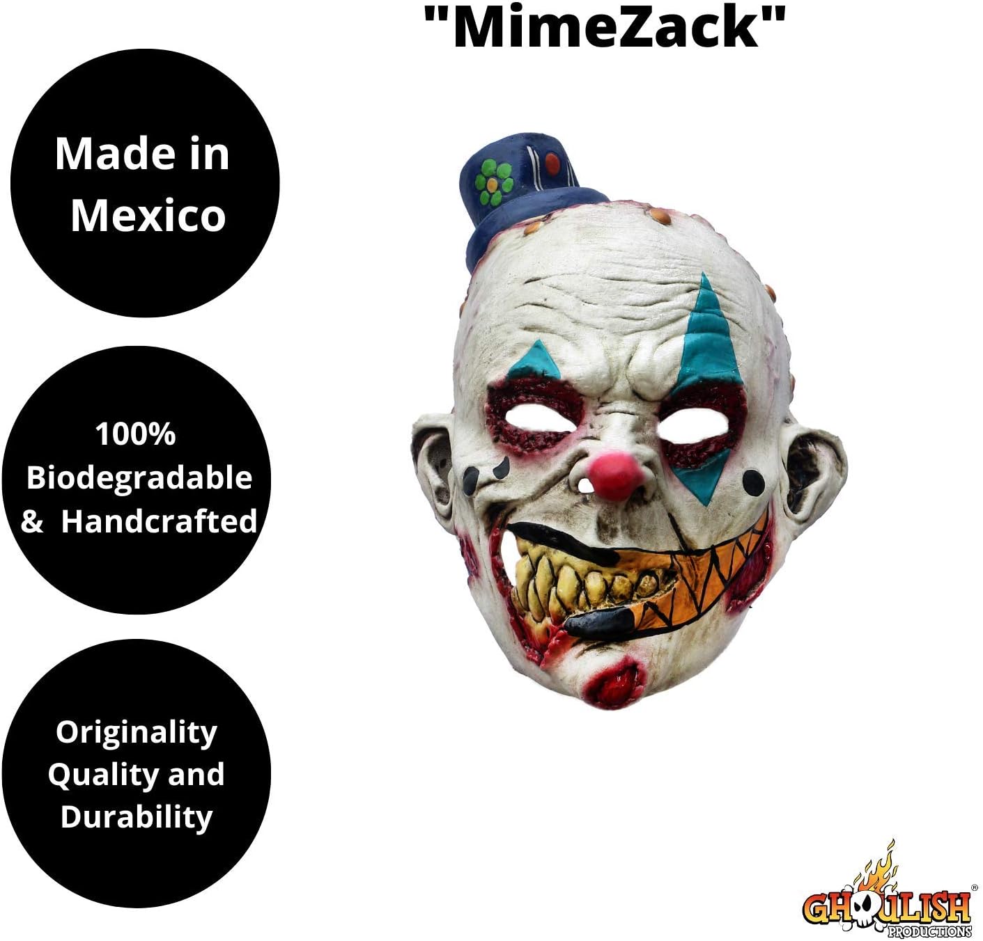 Mime Zack Mask della linea Clowns di Ghoulish Productions. Il clown mimo più detestabile si trova presso Ghoulish Productions, sorprendi tutti questo Halloween con questa maschera in lattice. I clown sono comunemente percepiti come personaggi colorati che fanno ridere i bambini. Tuttavia, più di uno è stato l'incubo dei più piccoli, poiché dietro al loro travestimento possono nascondere la loro crudele perversità. Materiale: Realizzata e dipinta a mano in Messico con un processo completamente artigianale. 100% lattice biodegradabile. Maschera di alta durata e qualità. Dimensioni: Taglia unica per adulti unisex. 26 x 23 x 24 cm. Design: Maschera del terrore del clown Mimo Zack della linea Clowns. Super realistica, molto elastica e perfettamente adattabile al viso. Occasione: Perfetta per Carnevale, costumi, rappresentazioni teatrali, giochi di ruolo, feste a tema, Halloween, decorazioni per bar, hobby artistici, passatempi da collezione.