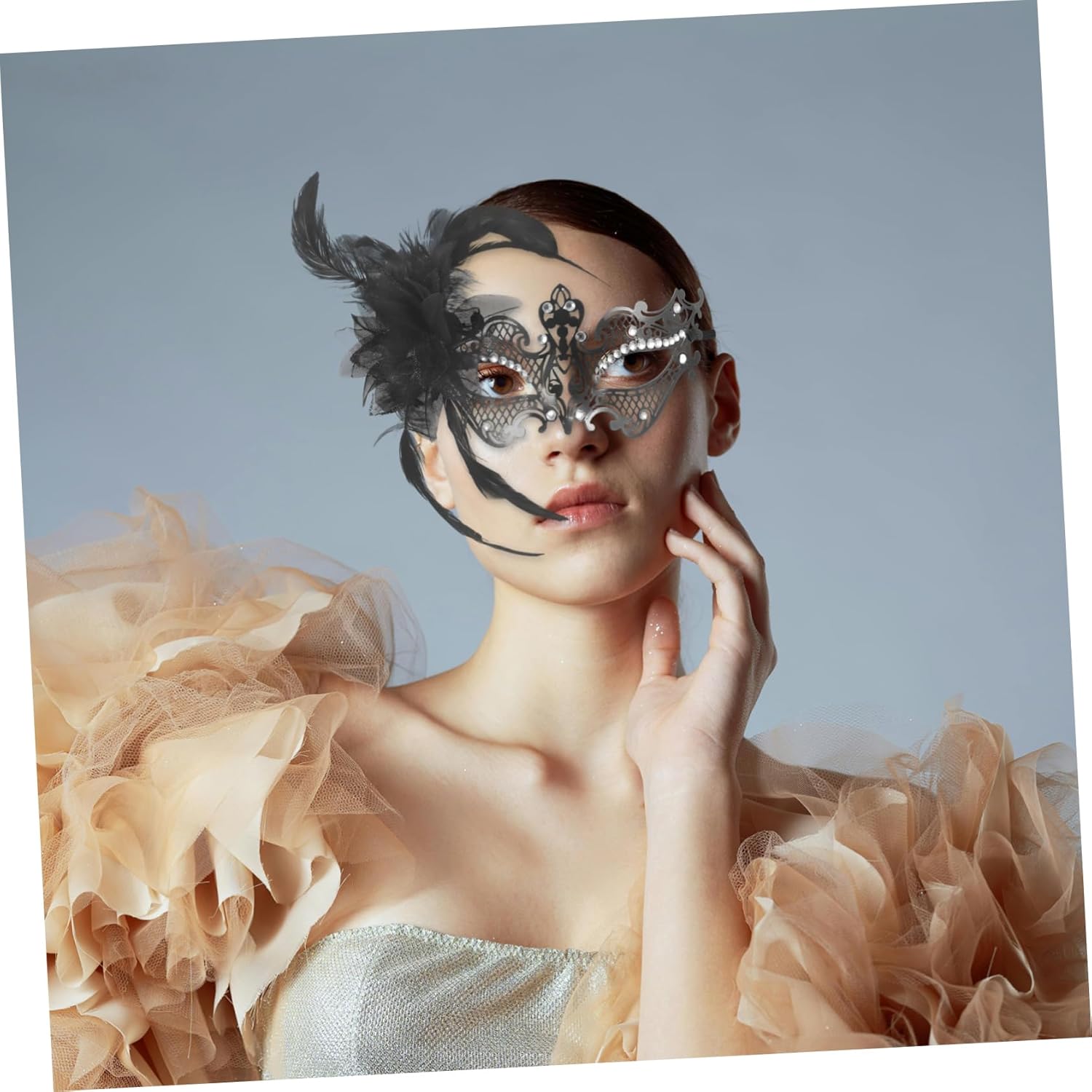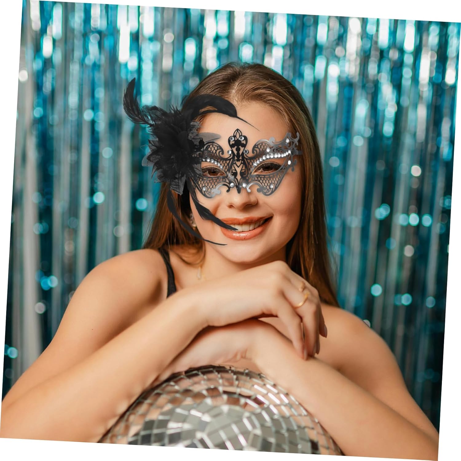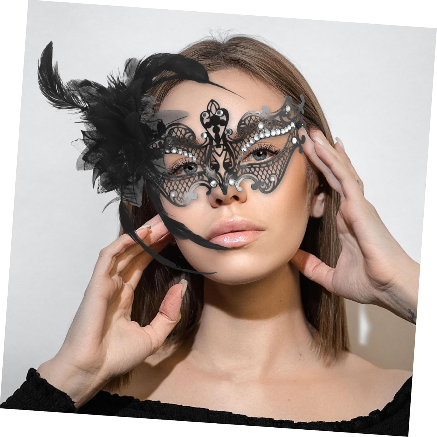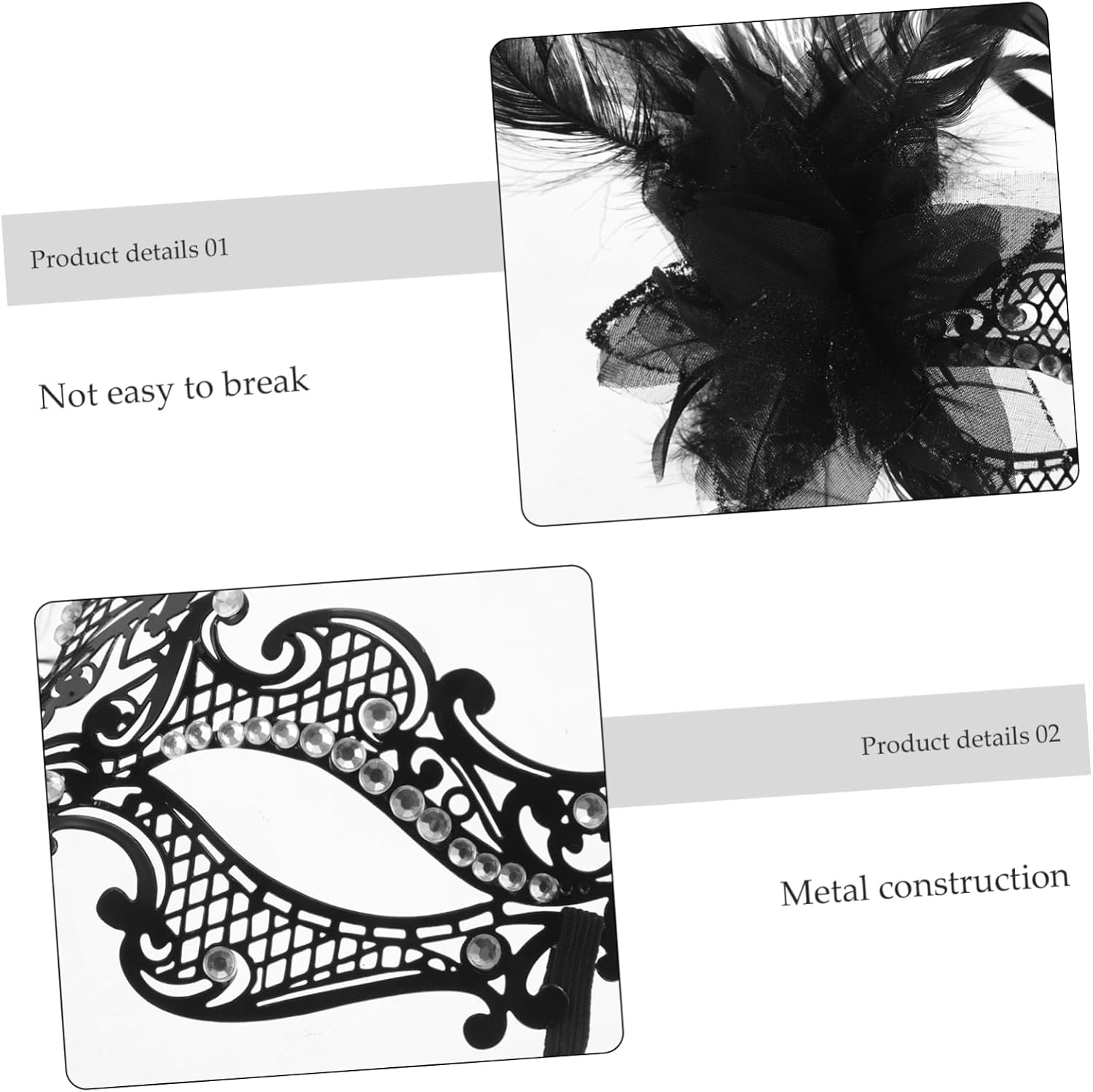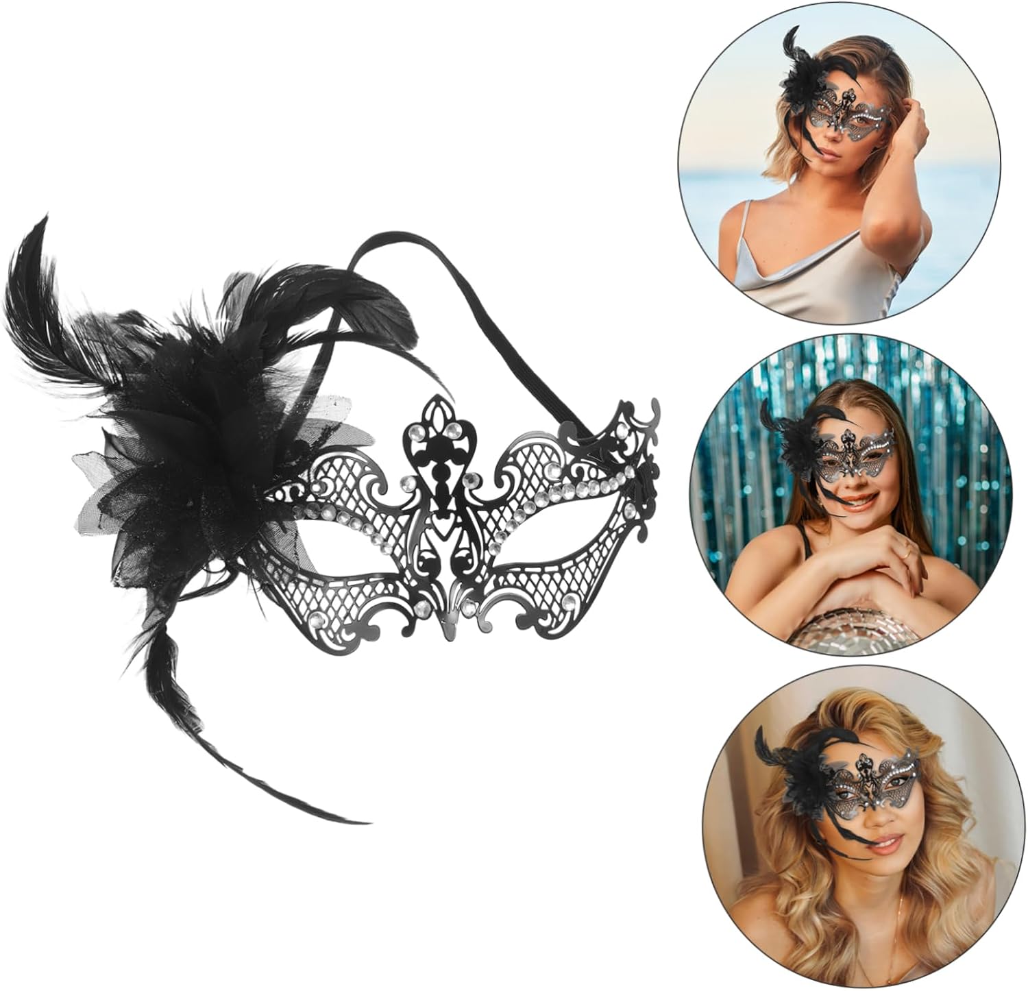 dei pacchetti 1 maschera di carnevale Caratteristiche - metallo: realizzato in metallo, fornisce un aspetto raffinato ed elegante alla decorazione della maschera cosplay - vestibilità: progettato ergonomicamente per adattarsi comodamente e saldamente al tuo viso accessori per costumi di carnevale per donne -Materiale: metallo, maschera di piume per costume -Strass scintillanti: gli accenti di strass aggiungono un tocco , migliorando l'aspetto generale della decorazione in maschera di Halloween - Uso multievento: ideale per feste in maschera, celebrazioni natalizie e altre occasioni speciali. -Colore: maschera nera per donne in maschera -Dimensioni: 22,50X12,00X3,50 cm/8,84X4,72X1,38 pollici maschera di carnevale per donna - Aspetto distintivo: il design distintivo della maschera evidenzia il tuo fascino unico e ti rende la star del costume da maschera da festa Descrizione della merce Maschera di carnevale per donna La struttura in metallo è resistente e leggera, mentre gli abbellimenti in strass sono bellissimi. Costume di carnevale per balli in maschera, feste a tema ed eventi festivi, questa maschera a mezzo viso aggiunge un tocco di e glamour al tuo look. Maschera di carnevale a mezzo viso Migliora il tuo abbigliamento da festa con questa splendida maschera di carnevale