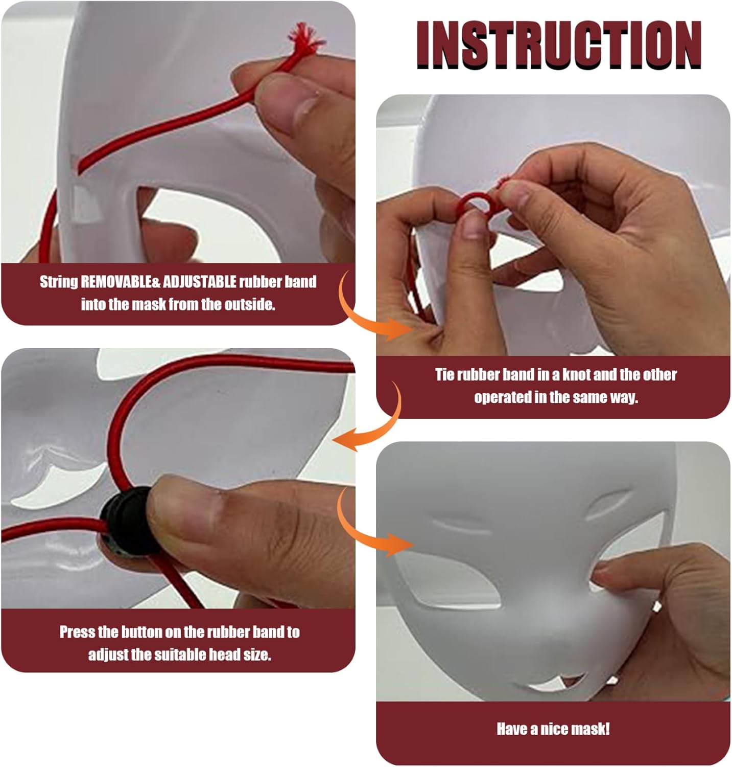 Materiale in PVC leggero: realizzato in PVC leggero, queste maschere sono comode da indossare per periodi prolungati..Il materiale è flessibile ma robusto, garantendo che le maschere reggano bene durante i tuoi eventi. Maschera bianca della testa del fuoco. Scatena la tua creatività: questo set include 5 maschere bianche, offrendo l'opportunità perfetta per scatenare la tua creatività..Ogni maschera è progettata per la pittura fai -da -te, che consente di personalizzare e creare design unici per ogni occasione..Testa pelosa maschera bianca Big Eye straordinario: gli occhi di grandi dimensioni danno alle maschere un aspetto espressivo e giocoso, aggiunge un tocco di fascino di Kawaii, rendendoli ideali per una gamma di eventi, da Halloween alle mascherate e fesplite..Maschera pelosa della testa pelosa Uso versatile: queste maschere sono perfette per Halloween, Masquerades, cosplay e feste in costume..Sono un'aggiunta versatile a qualsiasi collezione di costumi, fungendo da oggetti di scena, decorazioni per feste o come parte di un insieme di costumi completo..Maschera pelosa Maschera Therian Fit facile e sicuro: ogni maschera è dotata di cinghie regolabili, consentendo una vestibilità sicura e comoda..Le cinghie assicurano che le maschere rimangano sul posto durante le feste..Il design consente inoltre di essere facili e spento, rendendoli convenienti per bambini e adulti..Costume da maschera Therian maschera