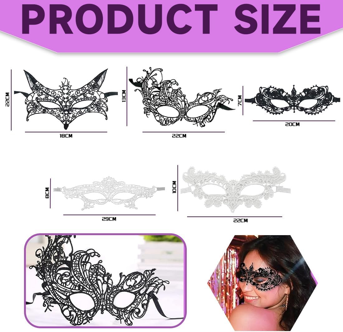 Maschera da mascherata: Il pacchetto include 5 pezzi di maschere in 5 stili. Quantità sufficiente di maschere in maschera per le vostre riunioni di famiglia e feste da ballo per più persone. Materiale di prima qualità: La maschera può essere facilmente modellata sui contorni del viso di chi la indossa. Caratteristiche: il motivo in pizzo nero aggiunge mistero e ti rende più affascinante. Un accessorio indispensabile per feste in maschera e Halloween da donna. Dimensioni appropriate: la maschera in maschera è attaccata con una fascia a nastro nero da legare, comoda per la regolazione in base alla forma del viso, taglia unica per la maggior parte delle persone. Ampiamente uso: le maschere in maschera sono perfetti per la festa in maschera, carnevali, Halloween, veneziano, cosplay, palla partito, night club, ricevimento di nozze, spettacolo teatrale e molte attività e.
