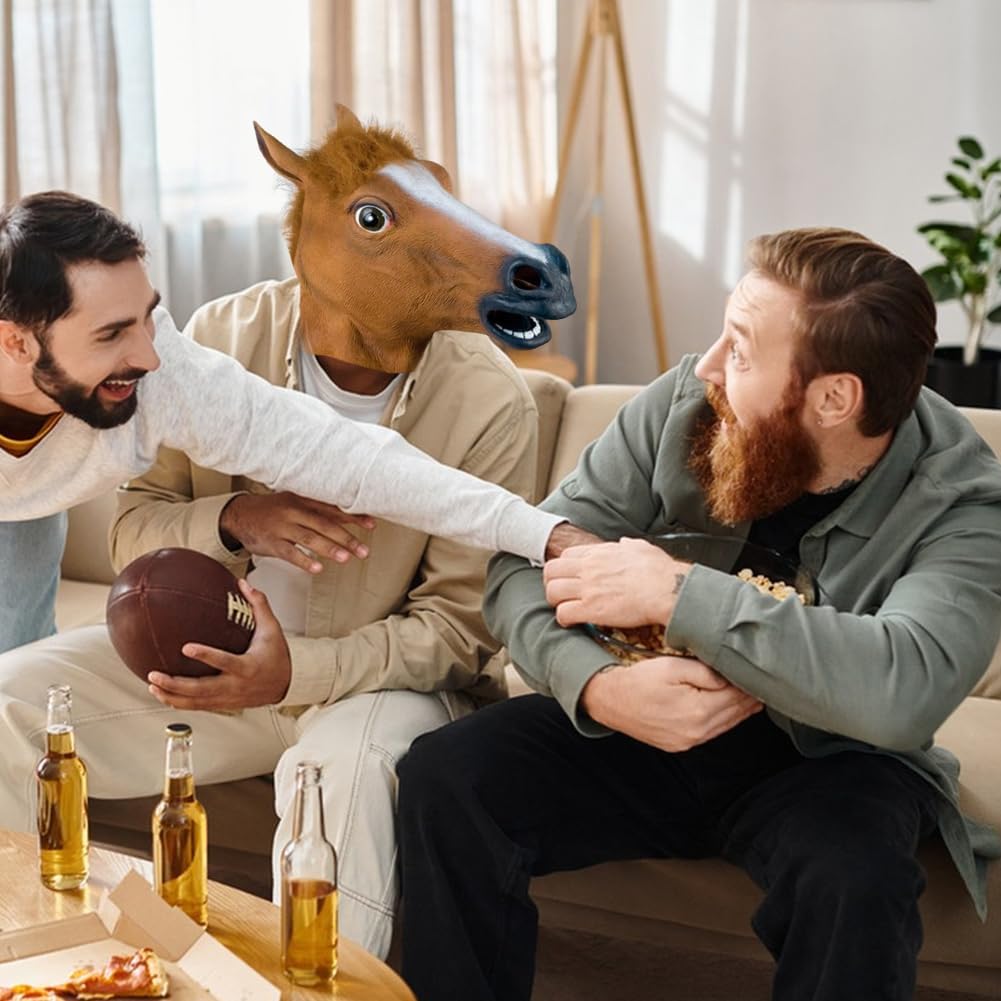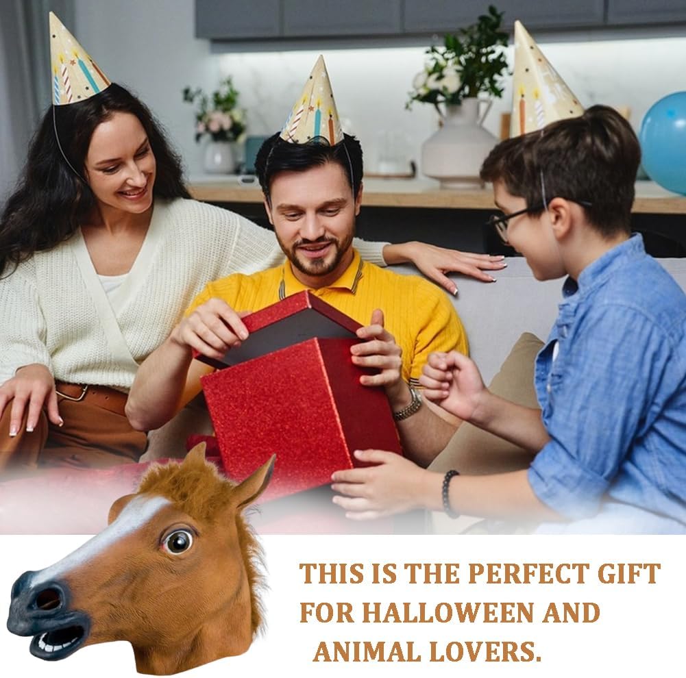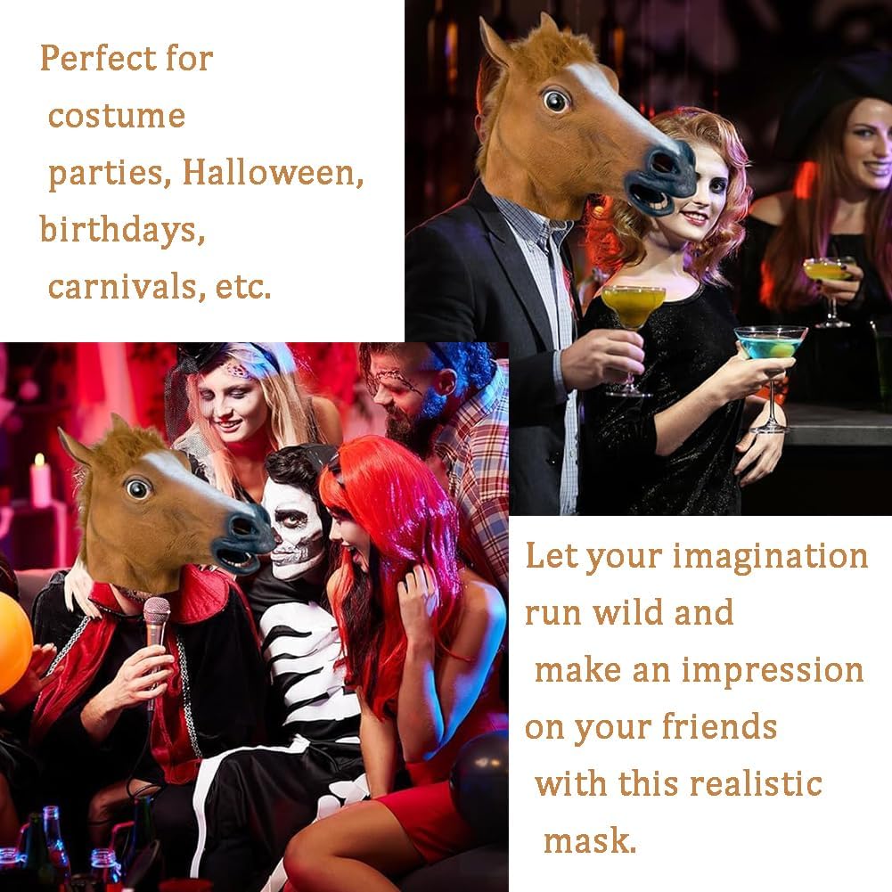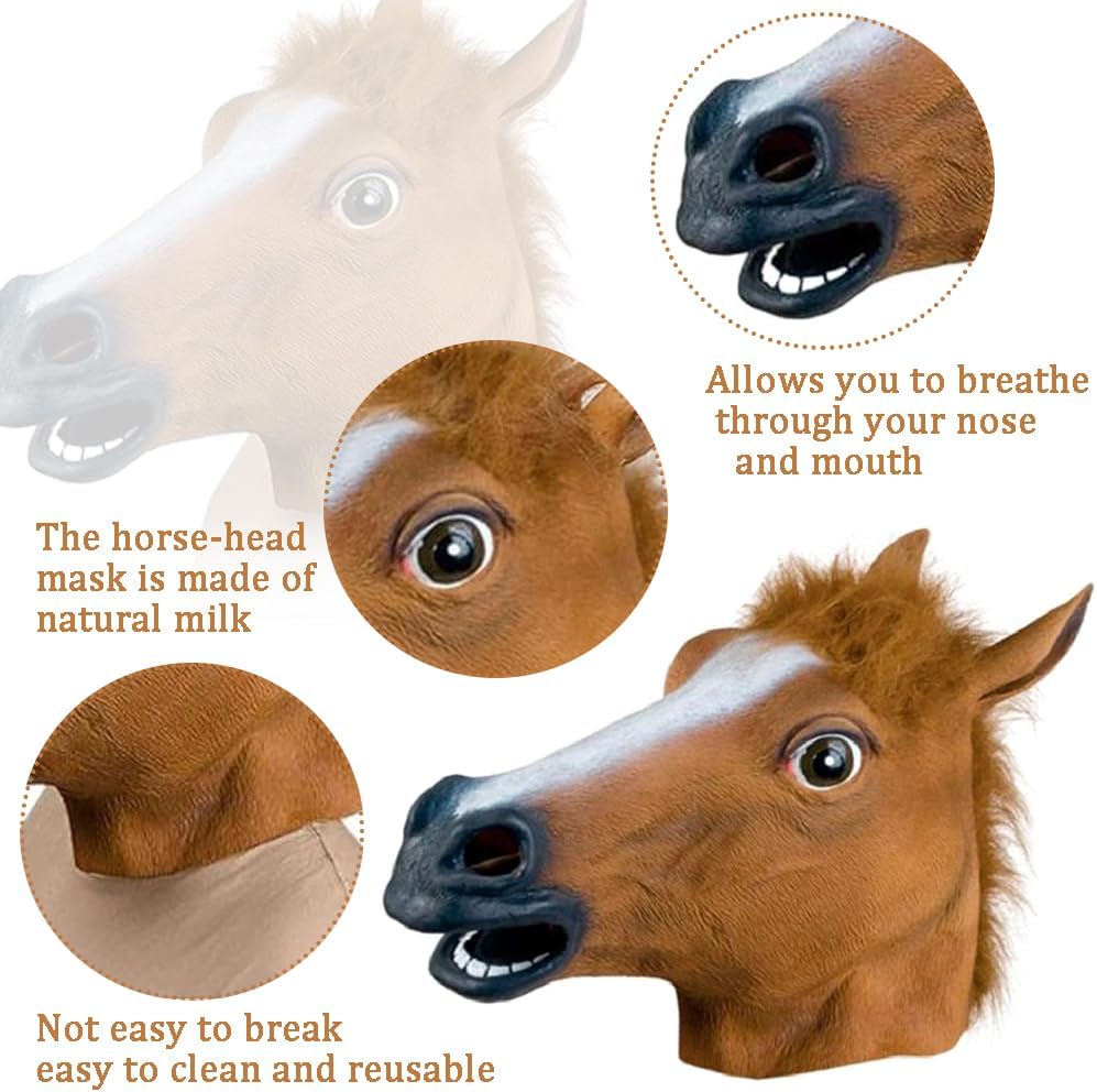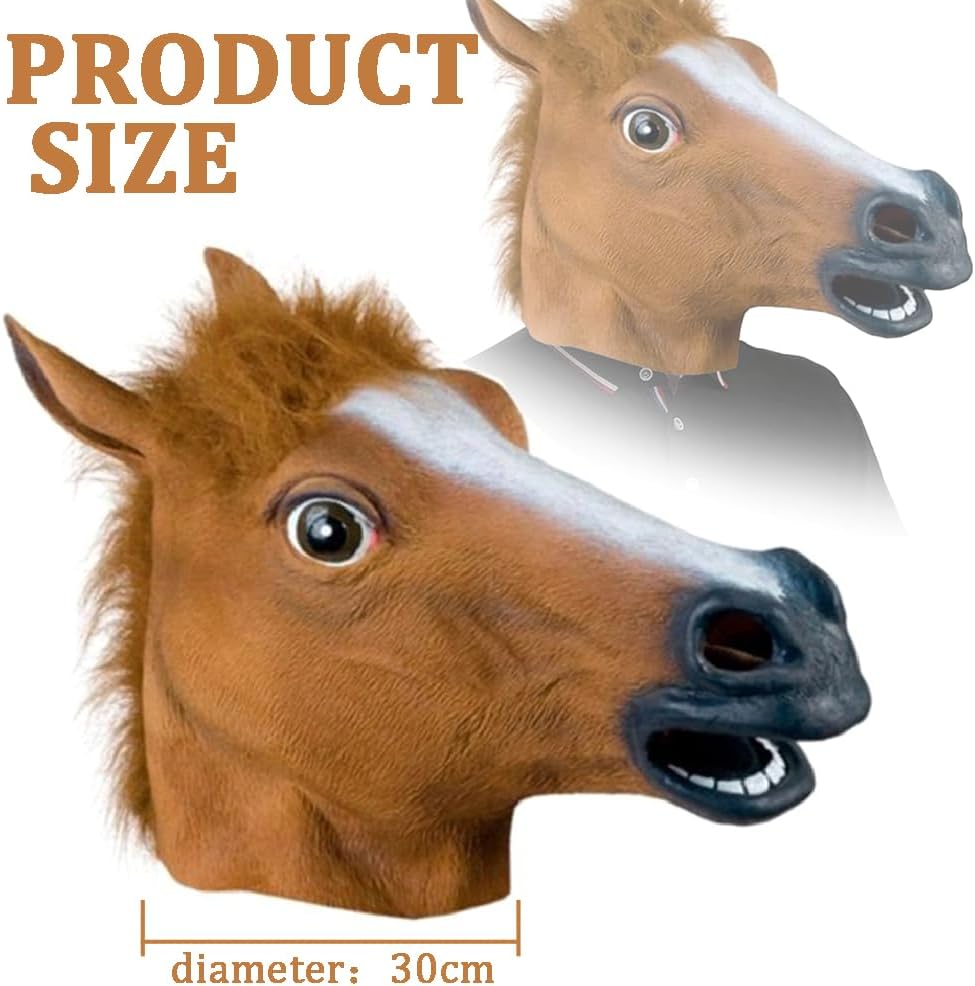 Descrizione prodotto Specifiche: Materiale: lattice Forma: testa di cavallo Colore: marrone. Lista imballaggio: 1 maschera per la testa di cavallo Avviso di sicurezza NO