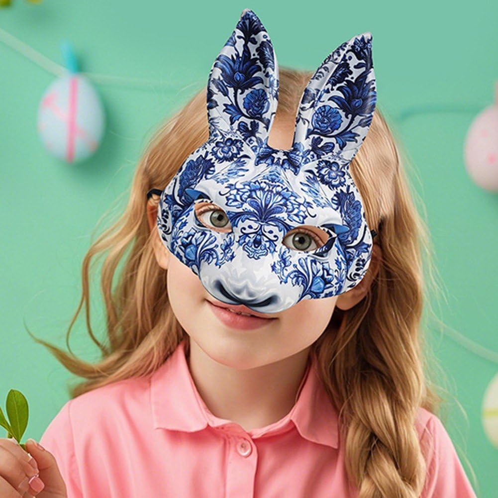 Regalo squisito: con un'aura di raffinatezza, questa mascherina è un regalo per famiglia, gli amanti e i vicini, esaltando ogni celebrazione festiva Diffondi allegria: progettato comodamente con una maschera coniglio a mezza faccia, questo pezzo mette in risalto i tuoi occhi e tua bocca, assicurandoti di distinguerti e interagire liberamente in qualsiasi celebrazione, migliorando vacanza Mantenimento della forma costante: realizzata in tessuto robusto + materiale PP, nostra mascherina per il viso a forma di coniglio pasquale è progettata per essere sicura e robusta, flessibile e resistente all'usura, garantendo che rimanga in forma per un uso prolungato. Ottima praticità: questa maschera per il viso a forma di coniglio pasquale combina leggerezza e praticità con una facile indossabilità, garantendo attività senza restrizioni e una visione chiara. Adatto per le festività: ideale per eventi di Halloween, Natale e Pasqua, questa maschera per il viso con il viso di un coniglio si abbina perfettamente a carnevali, feste in maschera e temi discoteca.