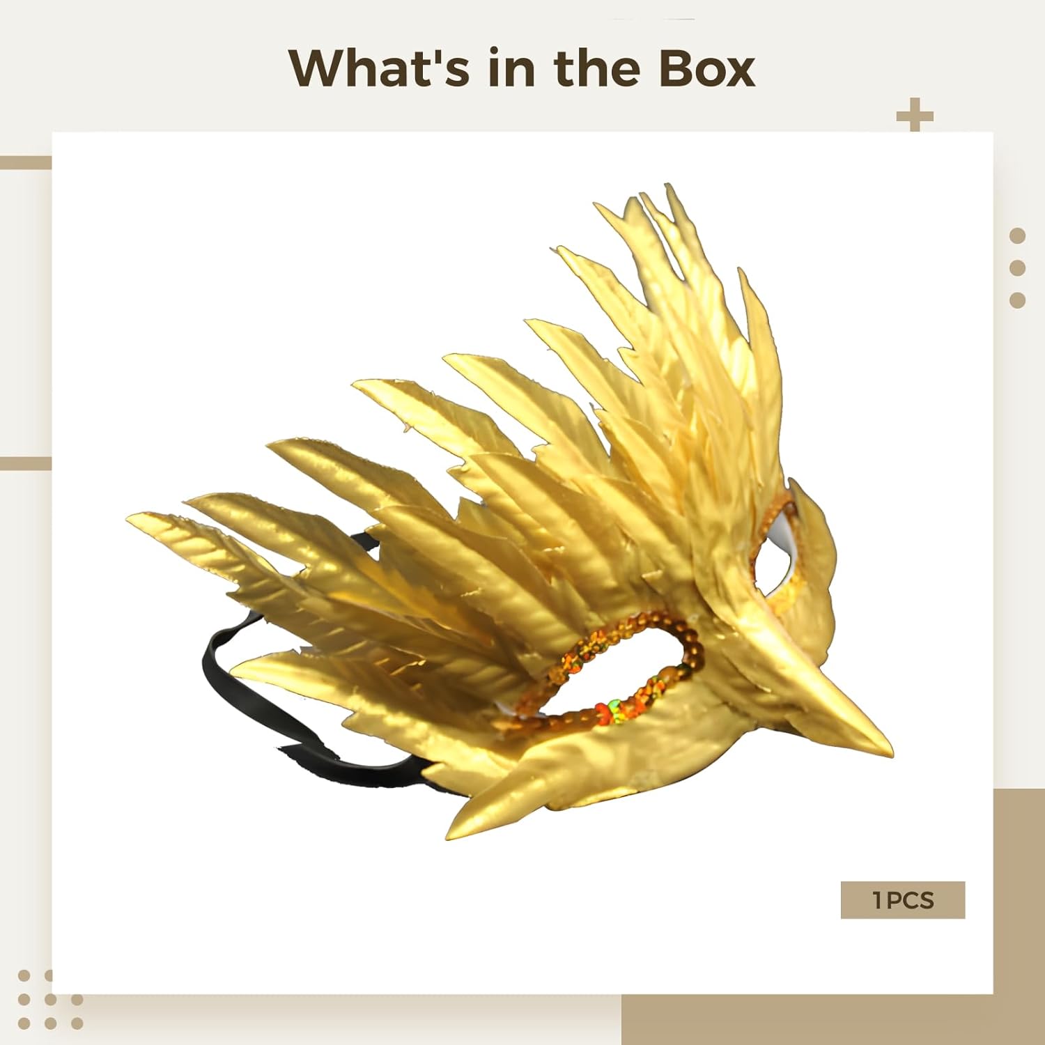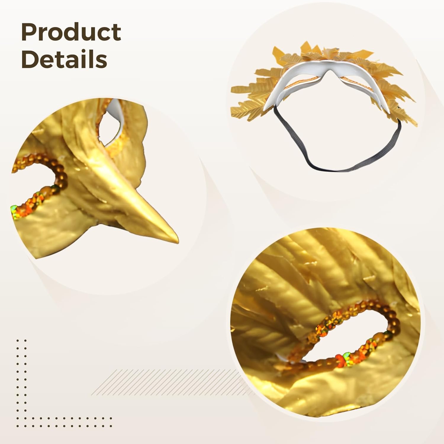 Colore: oro. Materiale: lamina d'oro. Dimensioni del prodotto: regolabile. La confezione include: 1 maschera in lamina d'oro. Nota: - Si prega di fare riferimento alla misura. Si prega di considerare un piccolo margine di errore nelle misure. - Potrebbe esserci una piccola differenza di colore a causa del monitor, della fotocamera o di altri fattori, si prega di fare riferimento all'articolo fisico.